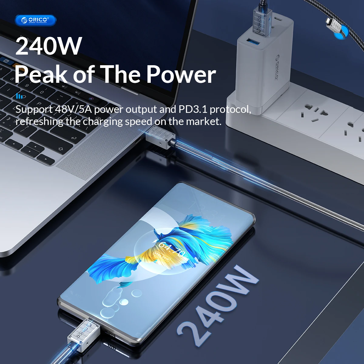 Pico de potencia de 4.240 W: admite salida de potencia de 48 V/5 A y protocolo PD3.1, actualizando la velocidad de carga en el mercado.