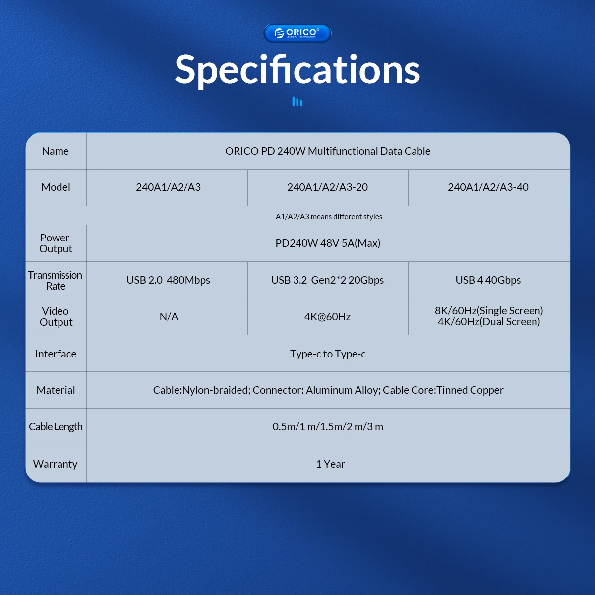 Cable PD240W de alta velocidad de función completa