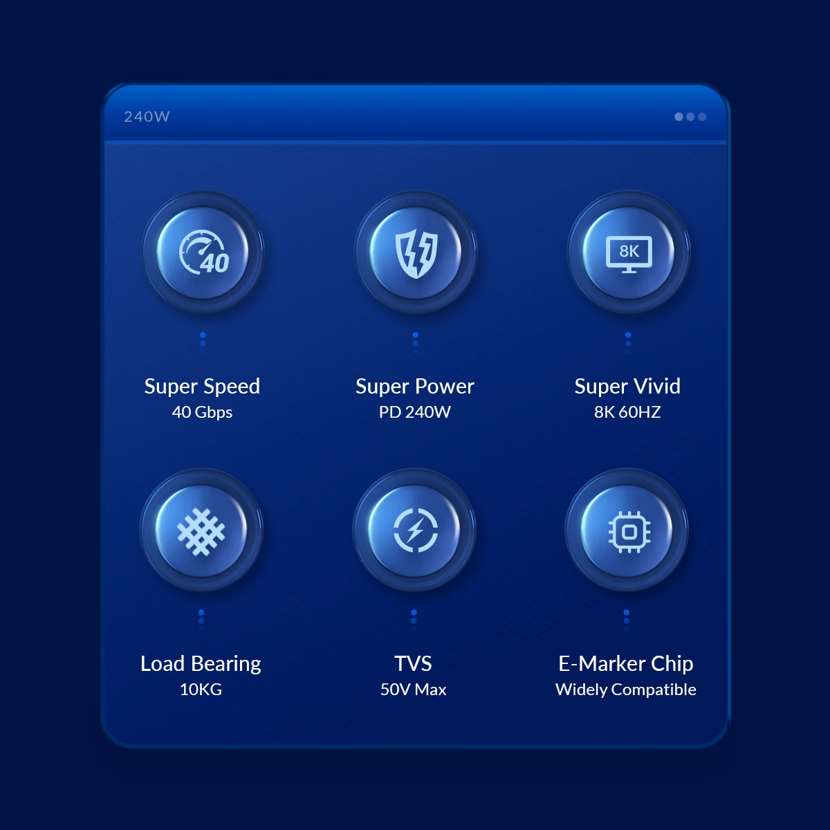 6.La seguridad máxima del TVS de 50 V es la máxima prioridad: el material del TVS puede soportar un voltaje fuerte de 50 V, lo que garantiza una experiencia de carga segura.