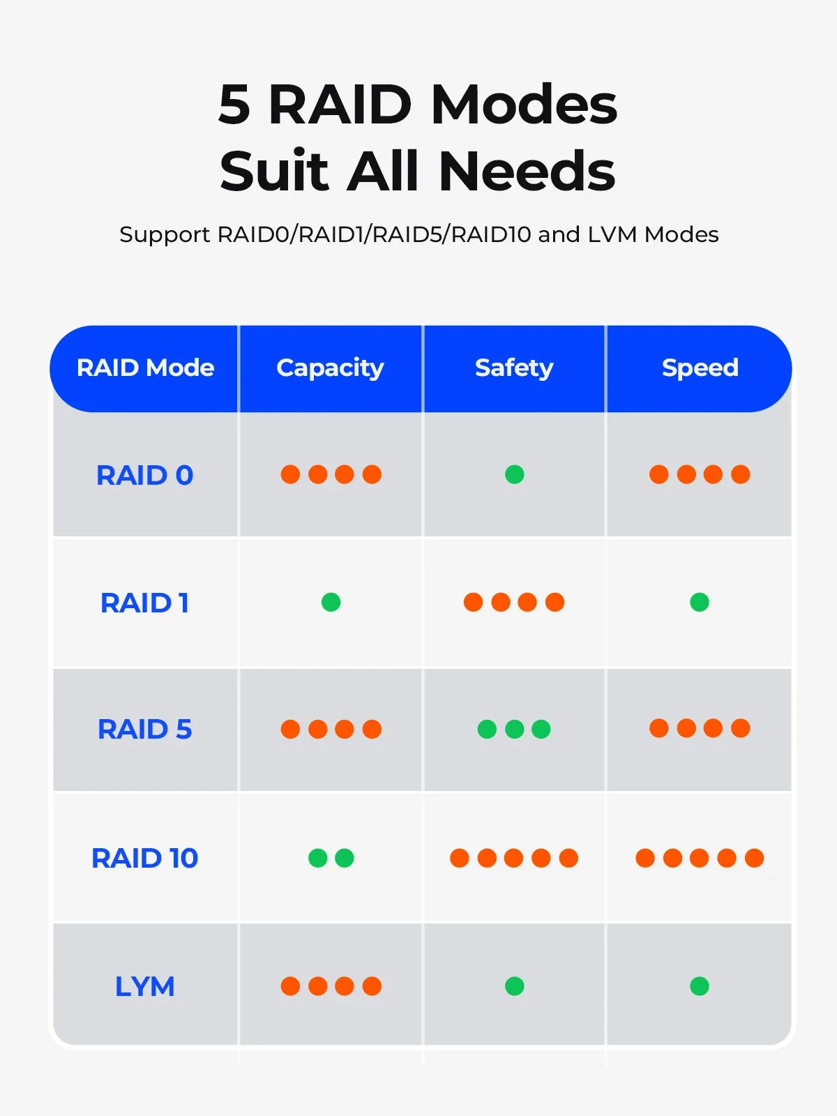 Una sola vía de hasta 20 TB de HDD/SSD le permite realizar copias de seguridad de sus datos en cualquier momento