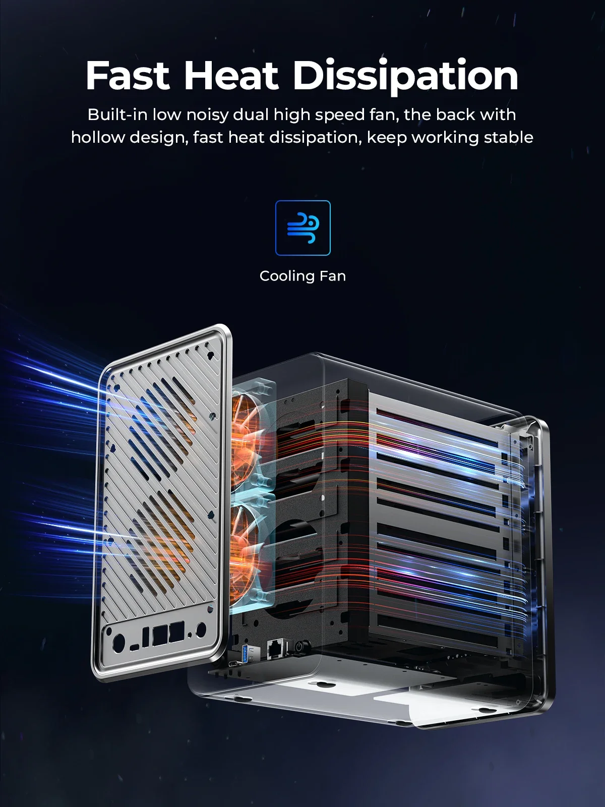 Ventilador dual de alta velocidad incorporado de bajo ruido, la parte posterior con diseño hueco