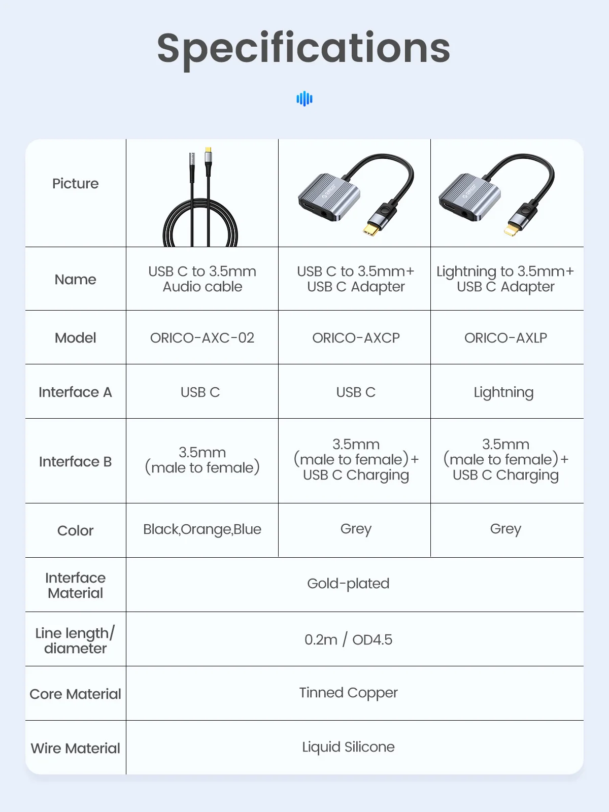 Comprar ORICO-Adaptador de auriculares tipo C 3,5, 2 en 1, Lightning USB C a 3,5mm, Cable adaptador de Audio auxiliar para Huawei, Xiaomi, iPad