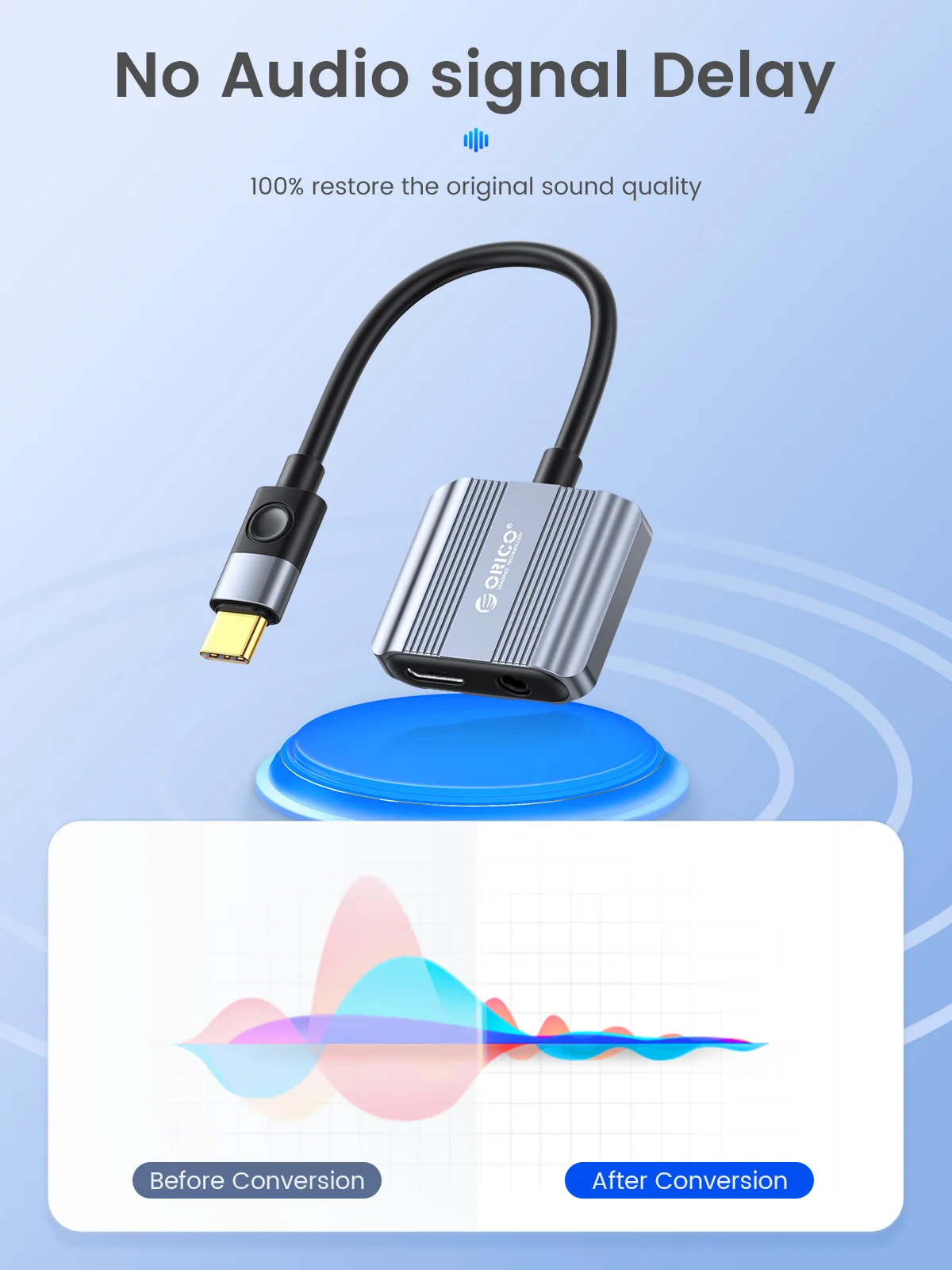 El adaptador ORICO USB C a auriculares admite control en línea, lo que le permite ajustar fácilmente el volumen.