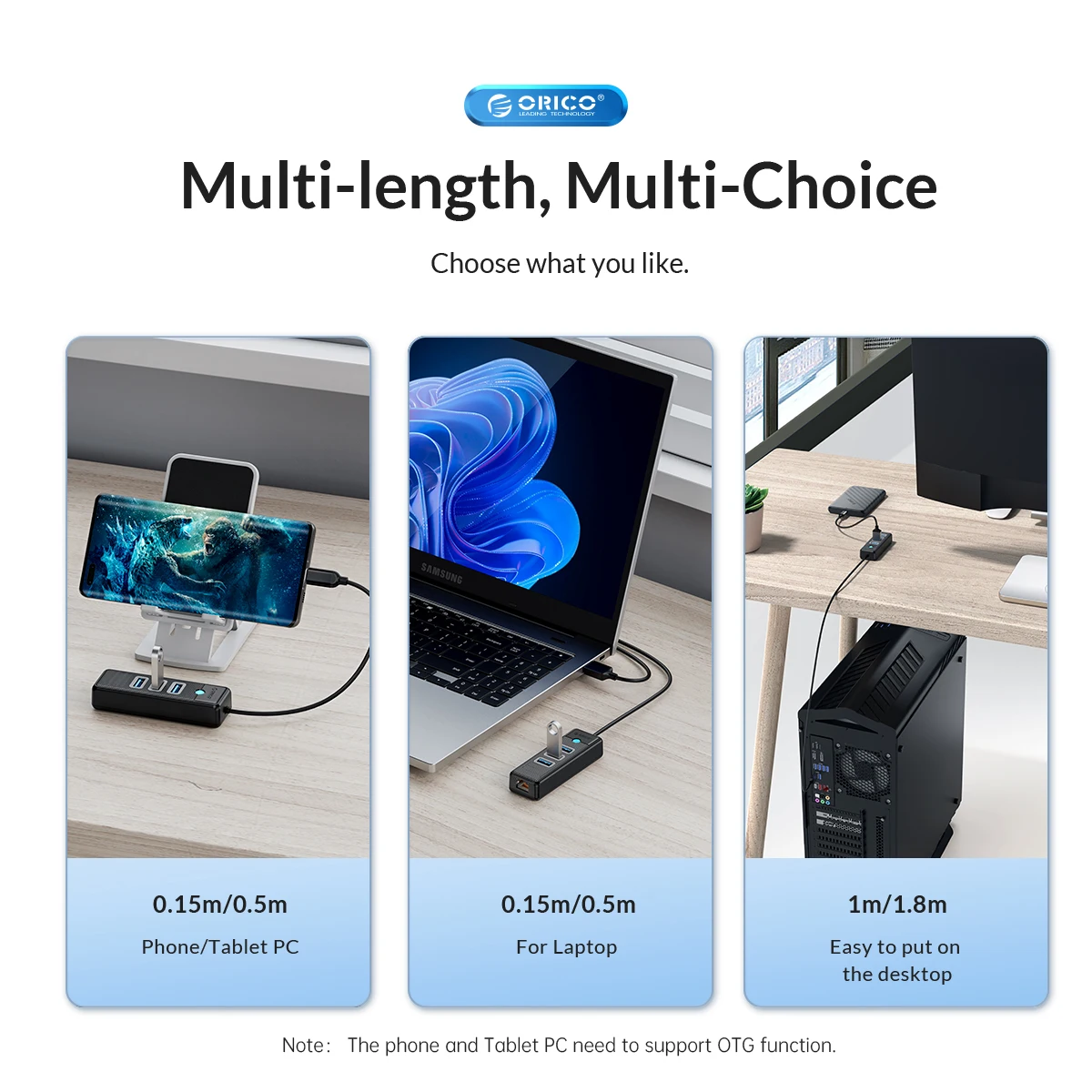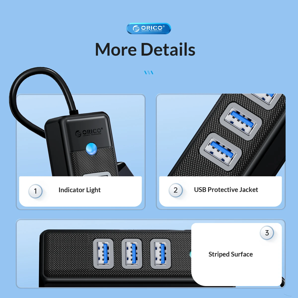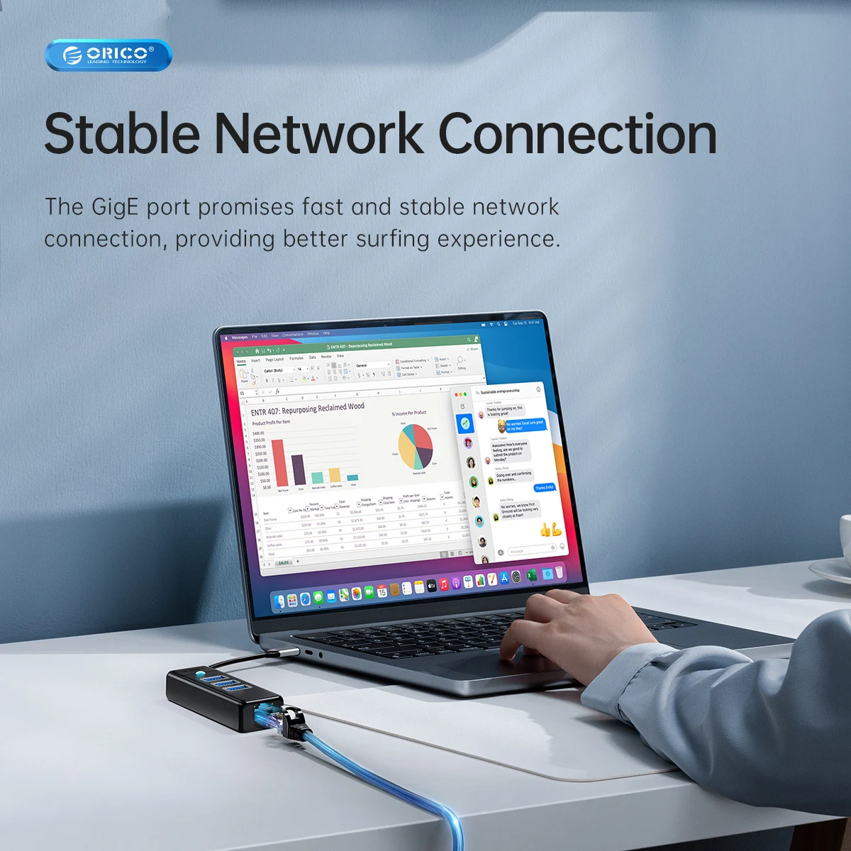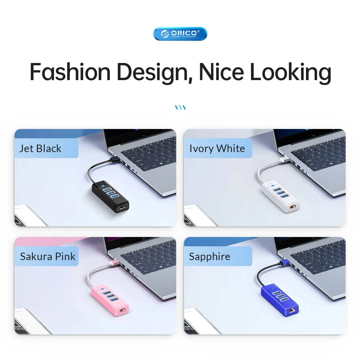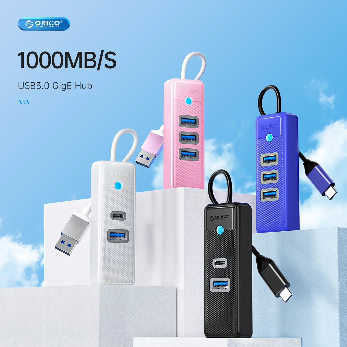 ORICO-adaptador Ethernet Lan para ordenador portátil, tarjeta de red Gigabit para MacBook, accesorios de computadora, 3 puertos, 5Gbps, USB 3,0, RJ45 HUB, 1000Mbps