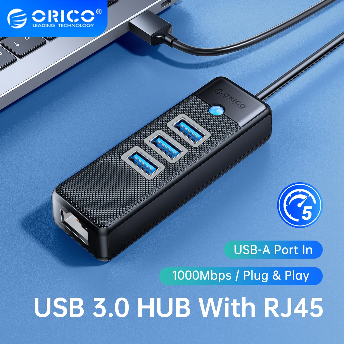 Comprar ORICO-adaptador Ethernet Lan para ordenador portátil, tarjeta de red Gigabit para MacBook, accesorios de computadora, 3 puertos, 5Gbps, USB 3,0, RJ45 HUB, 1000Mbps