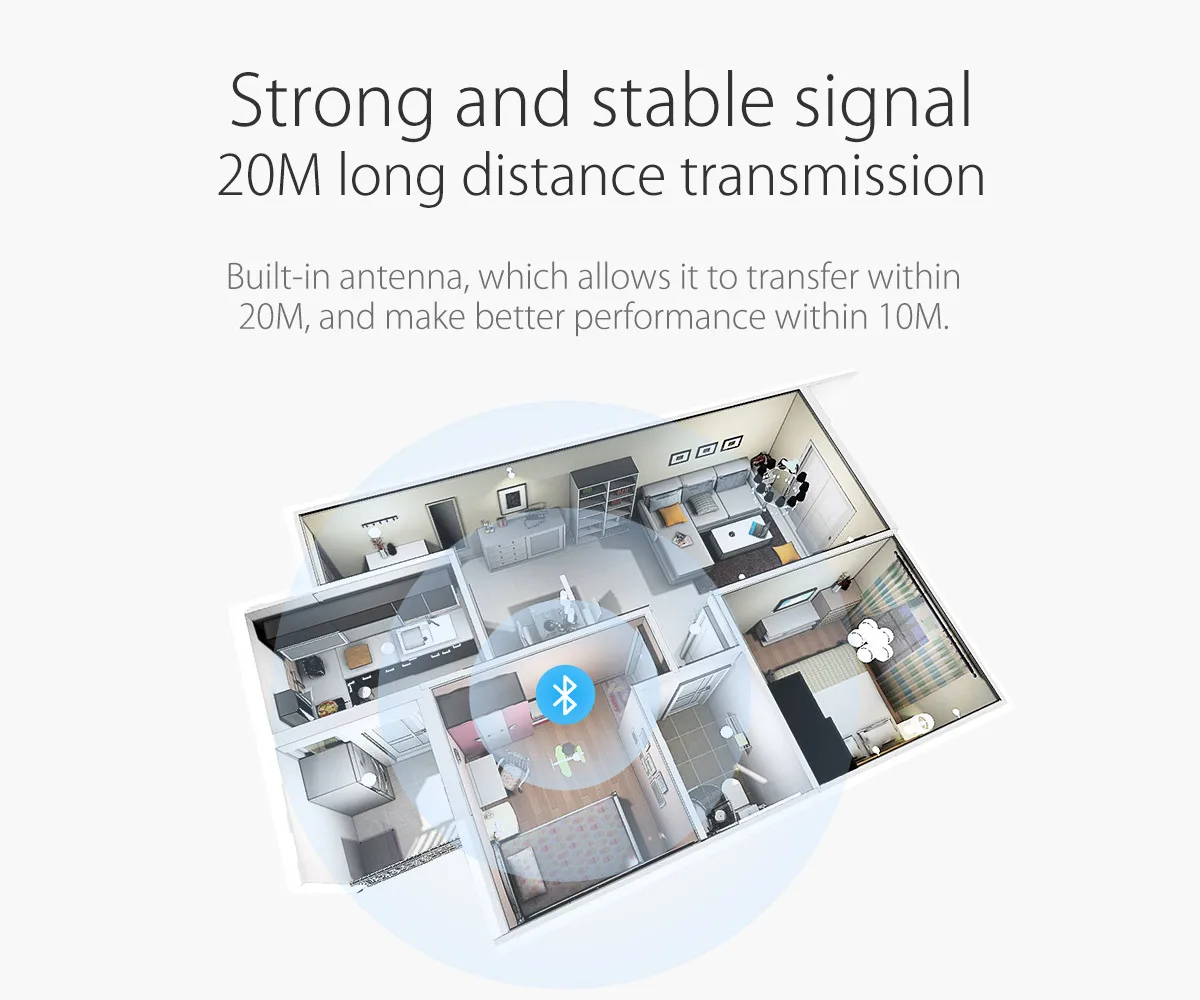 * La verificación CRC de 24 bits y el salto de frecuencia adaptativo (AFH) habilitados permiten una conexión confiable de hasta 3Mbps y 100 metros (peer to peer) con cualquier teléfono celular compatible con Bluetooth, tableta, altavoz, auriculares o auriculares, ratones y teclado.
