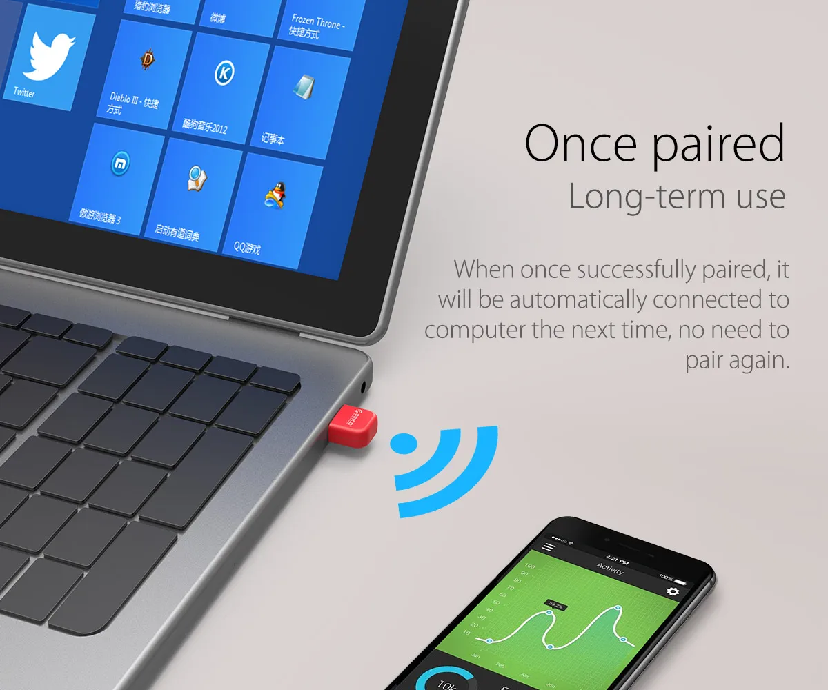 * Compatible con Classic Bluetooth-Compatible 4,0 y Bluetoth 3,0. El microadaptador de tamaño de uña habilitado para Plug and Play permite enchufar y olvidar.