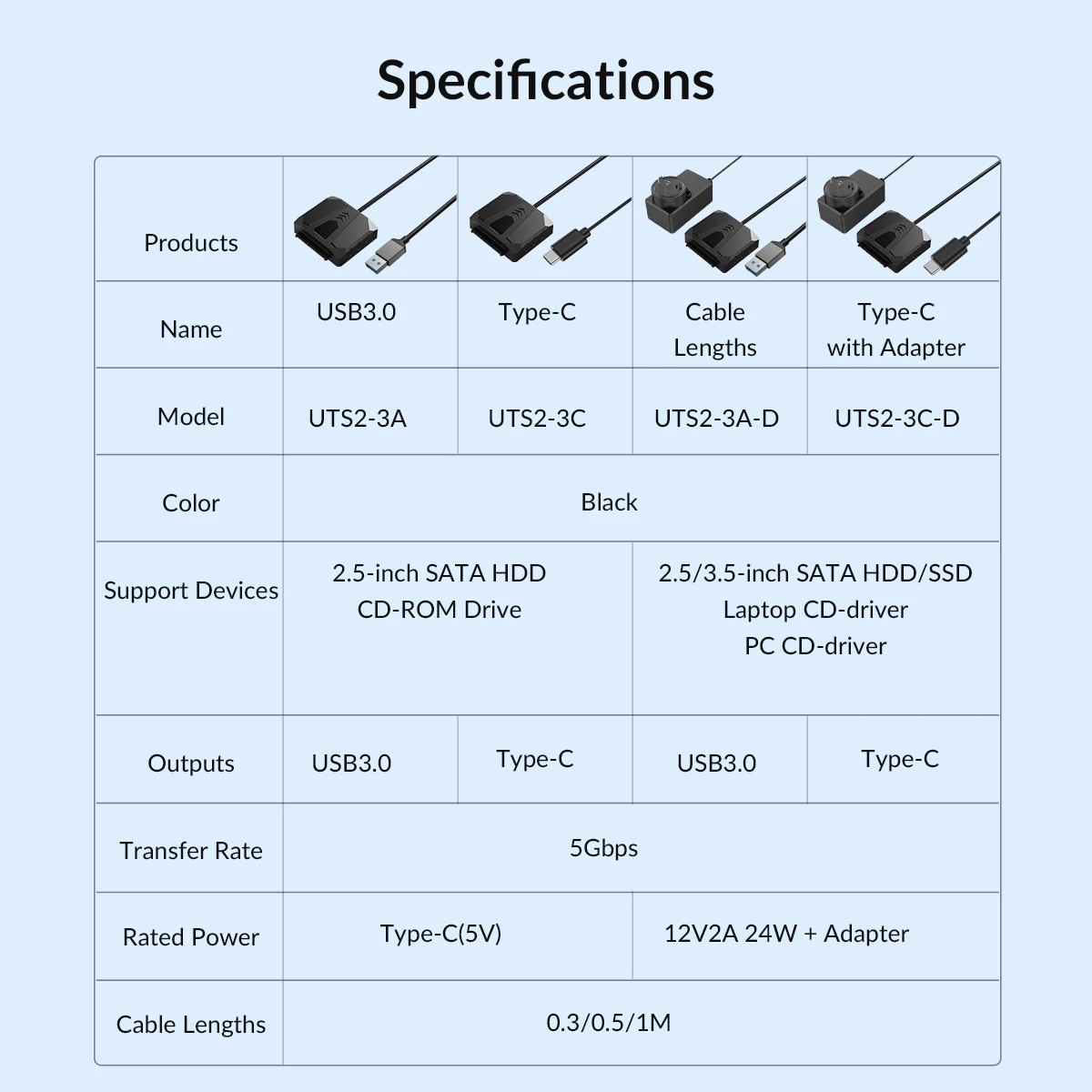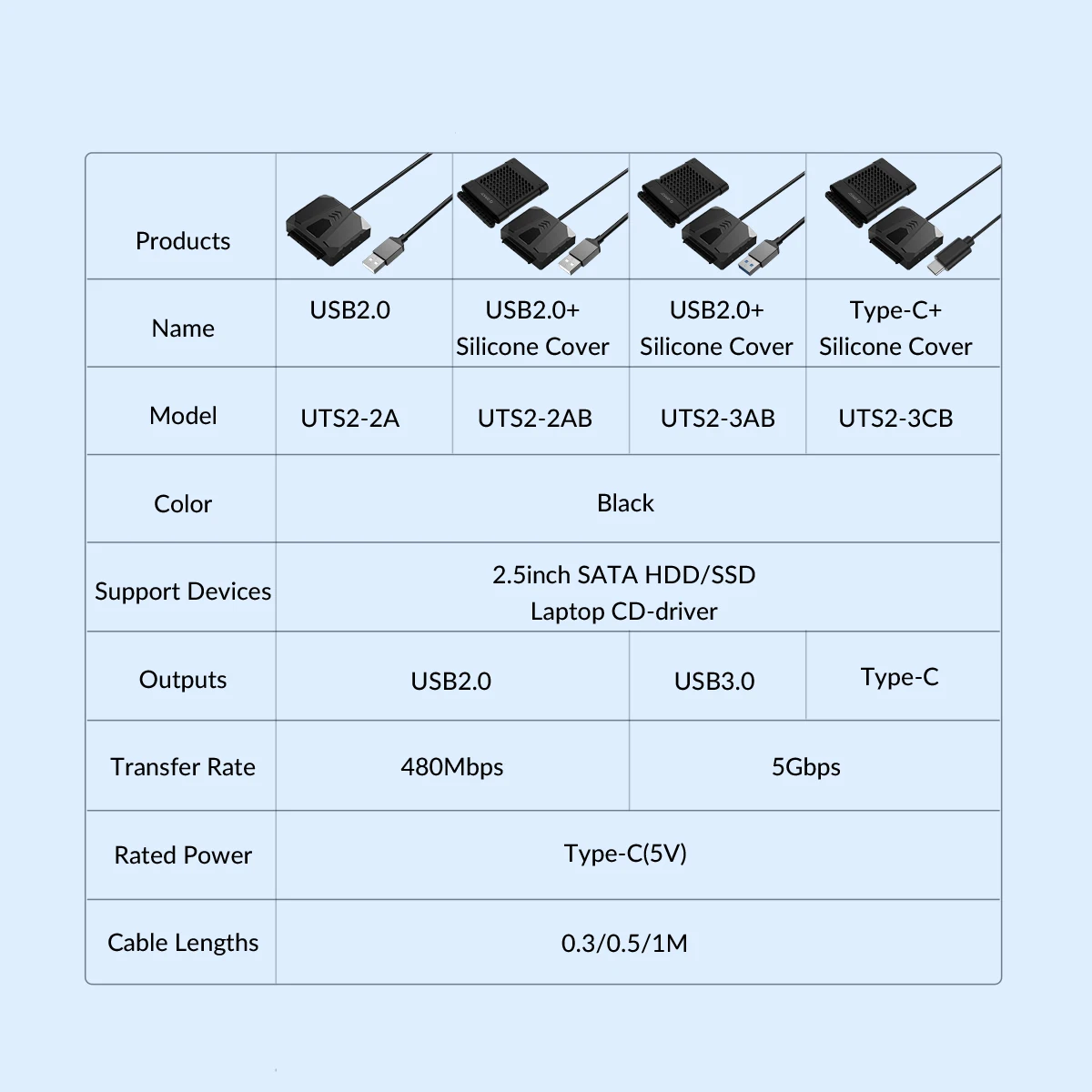 2-Todos los modelos son compatibles con 2,5 "HDD/SSD, los modelos con adaptador de corriente son adecuados para 2,5/3,5" HDD/SSD