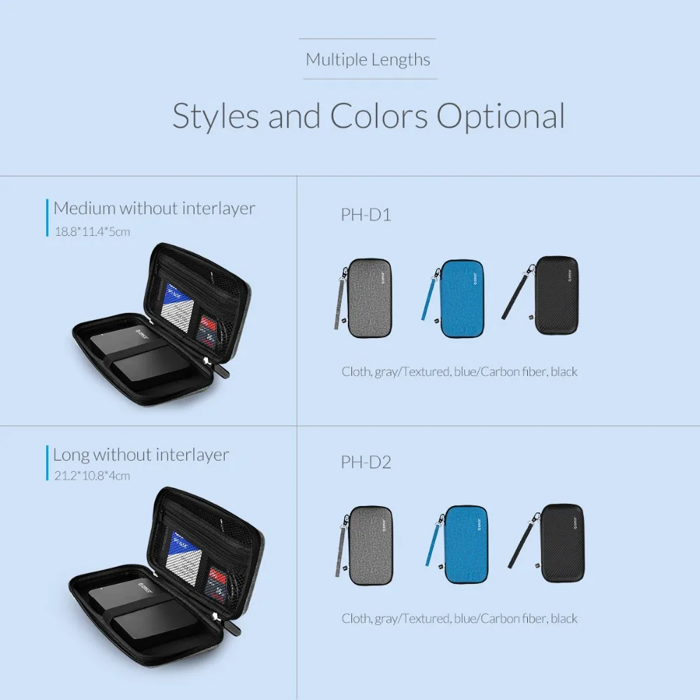 Comprar ORICO-Bolsa de protección para HDD de 2,5 pulgadas, caja para almacenamiento externo de HDD, Banco de energía, USB, Cable de disco duro, auriculares, bolsa multifunción