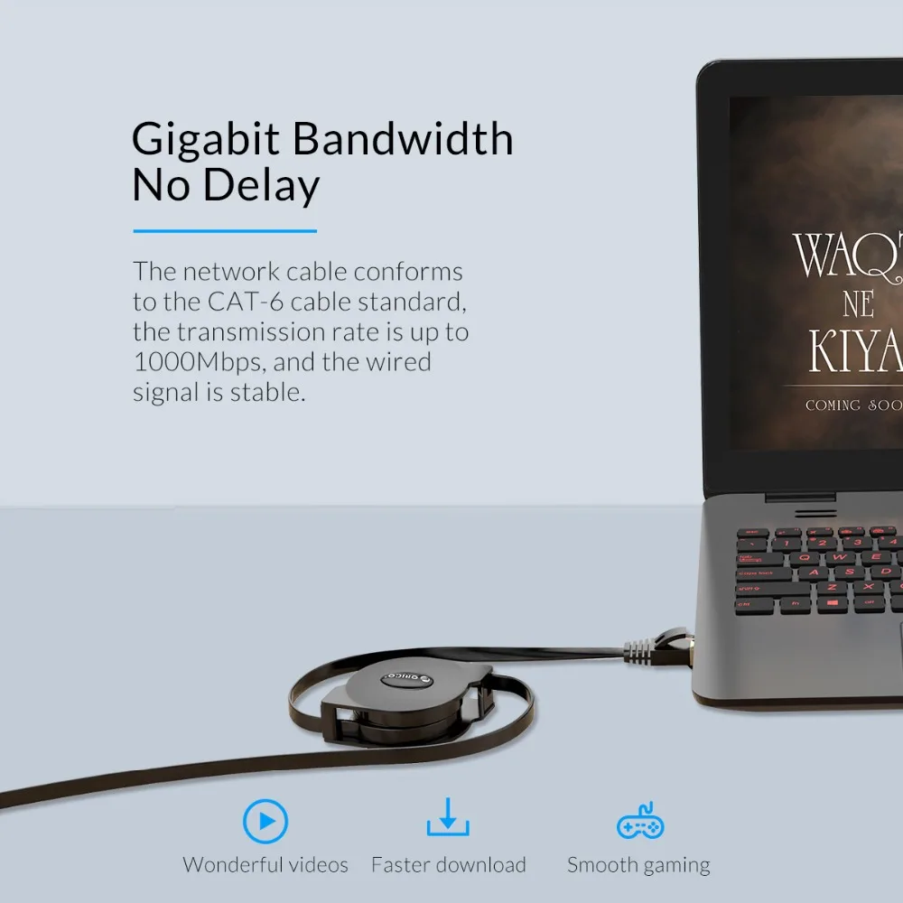 El cable de red cumple con el estándar de cable CAT-6, la velocidad de transmisión es de hasta 1000Mbps y la señal cableada es estable.