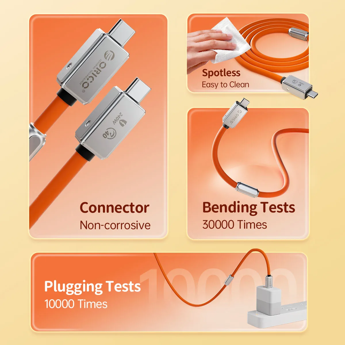 Comprar ORICO-Cable USB 4 de 240W para portátil, dispositivo de carga PD3.1, 40Gbps, transferencia de datos, vídeo, 8K @ 60Hz, silicona, para iPhone, Mac, eGPU