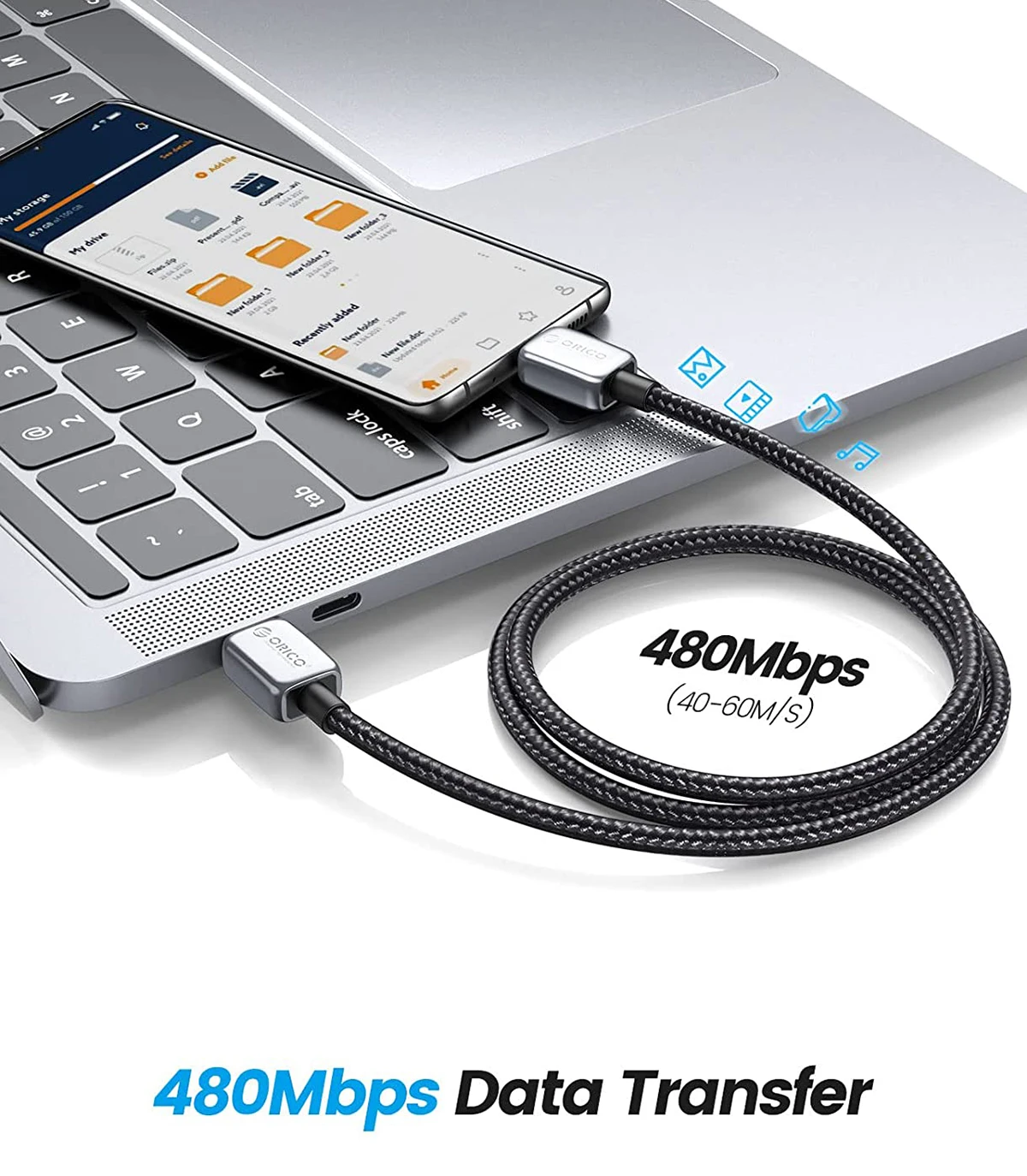 Carga rápida y sincronización de datos, Admite velocidades de transferencia de datos de hasta 480Mbps.