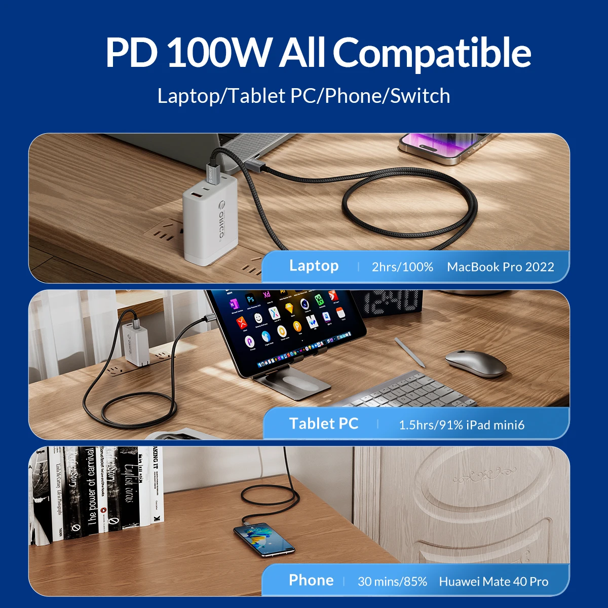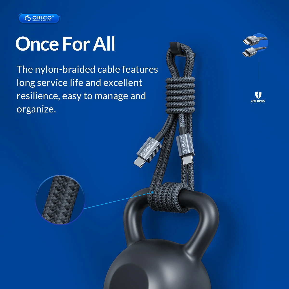 Comprar ORICO-Cable USB tipo C de carga rápida, 100W, PD, 5A, trenzado de nailon para MacBook Pro, iPad Pro Air, Samsung Galaxy, teléfono portátil