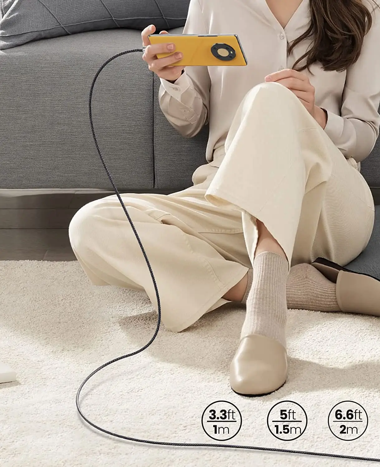 Los seis núcleos de cobre estañado, la capa de papel de aluminio y la capa de metal proporcionan una fuerte antiinterferencia y garantizan menos desperdicio de energía durante la carga.
