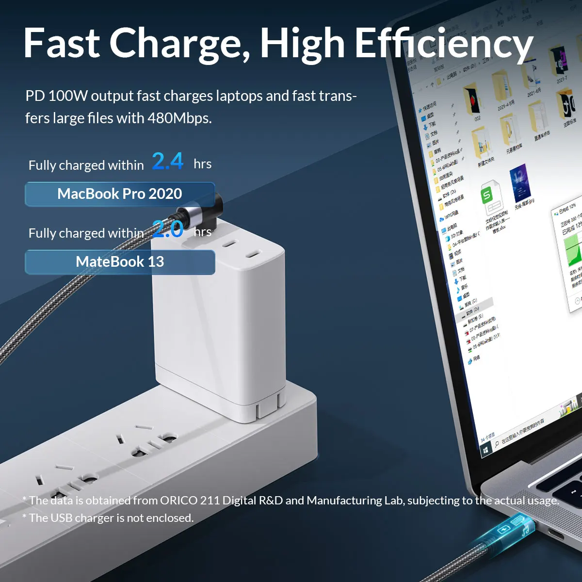 Comprar ORICO-Cable USB tipo C para ordenador, Cargador rápido con pantalla LED de 100W, 5A, para Macbook Pro, 15 iphone, iPad Pro y Samsung