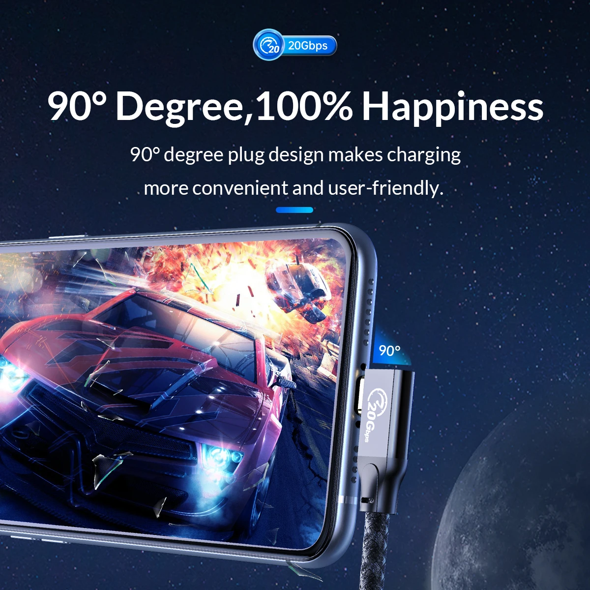Diseño de 90 gradosEl diseño especial del conector de 90 ° es mucho más cómodo para jugar o ver videos cuando se acuesta en el sofá o la cama mientras se carga.