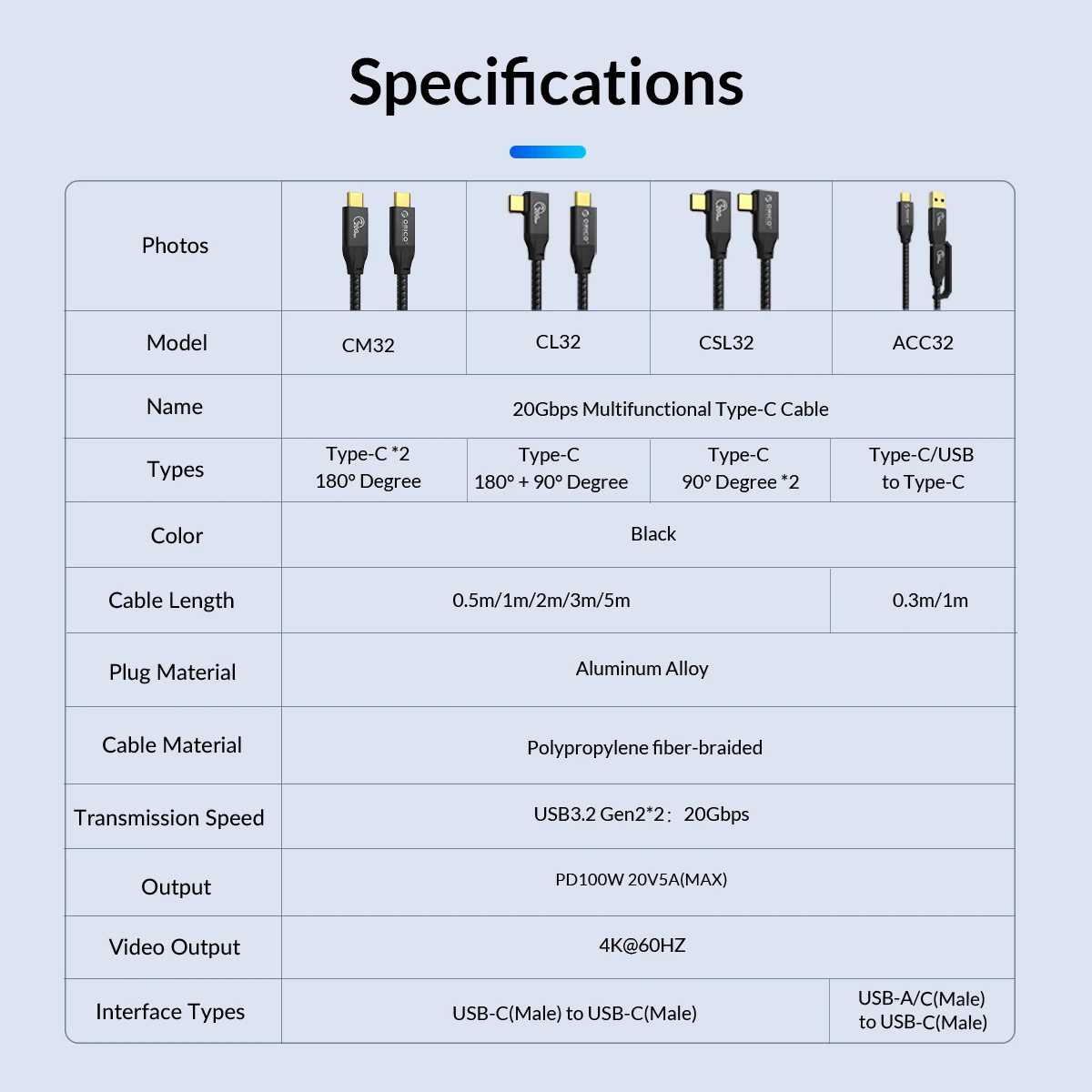 Comprar ORICO-Cable USB tipo C para ordenador portátil y MacBook, Cargador rápido de 5m, 20Gbps, PD100W, USB3.2, Gen 2, HD 4K @ 60Hz, trenzado de vídeo con marca electrónica