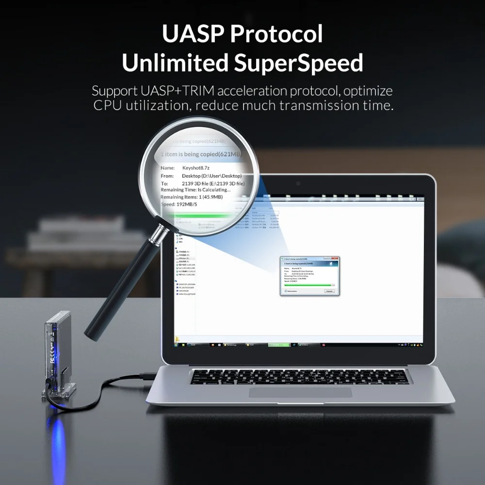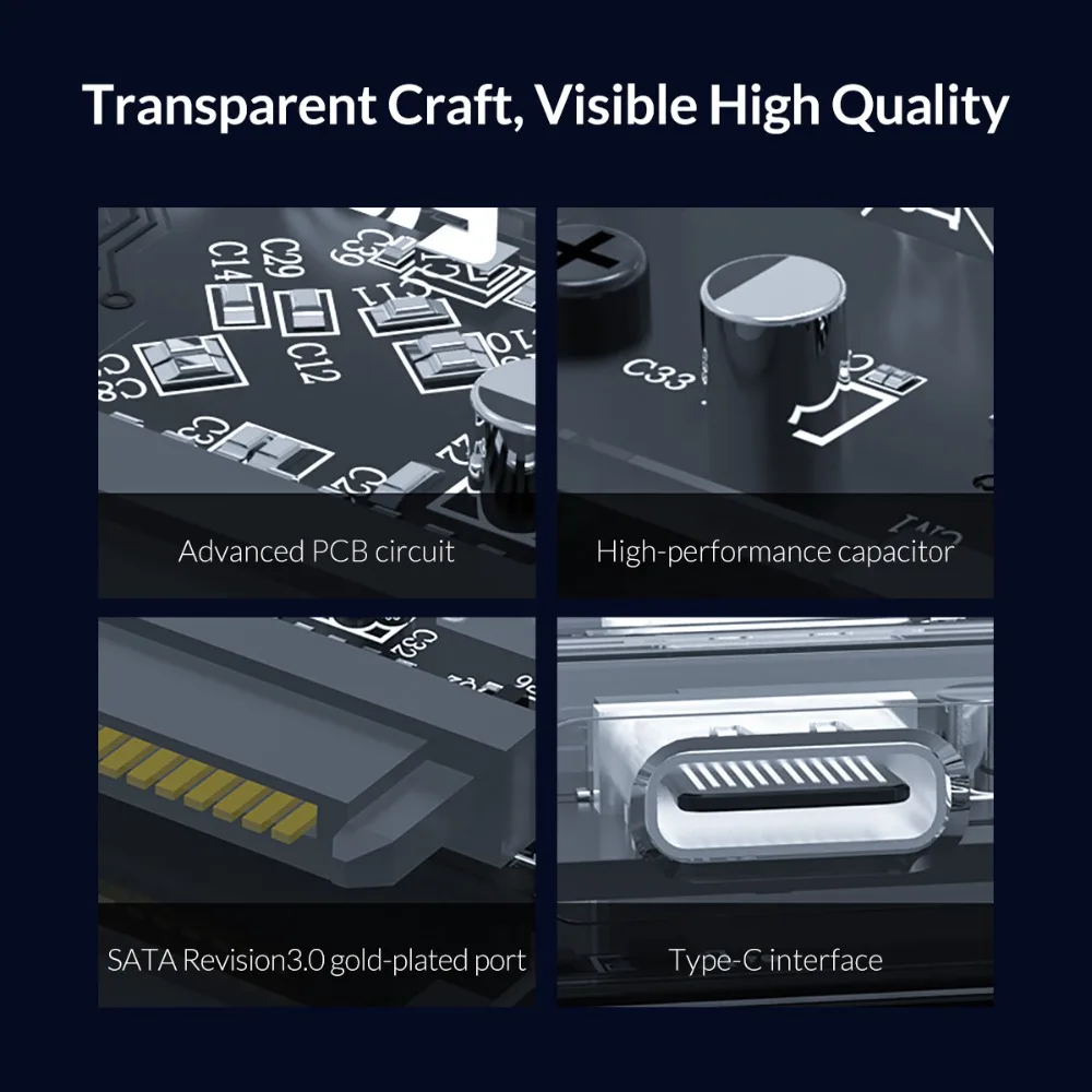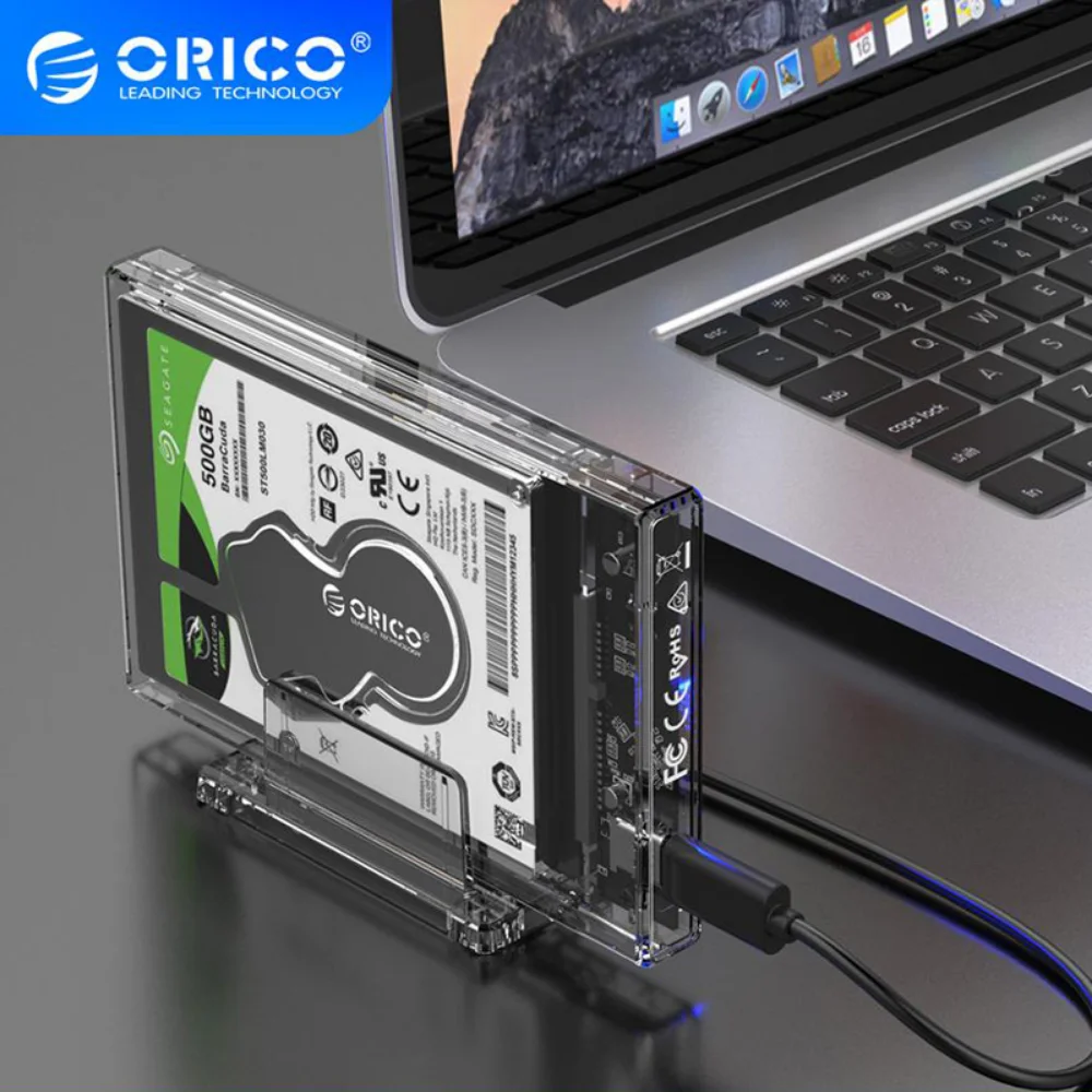 Comprar ORICO Caja de disco duro externa transparente Caja de disco duro de 2,5" SATA a USB 3.1 Tipo C Caja de disco duro con soporte para caja de disco SSD