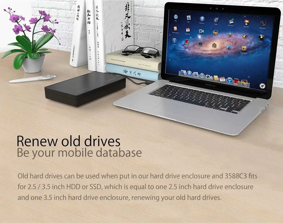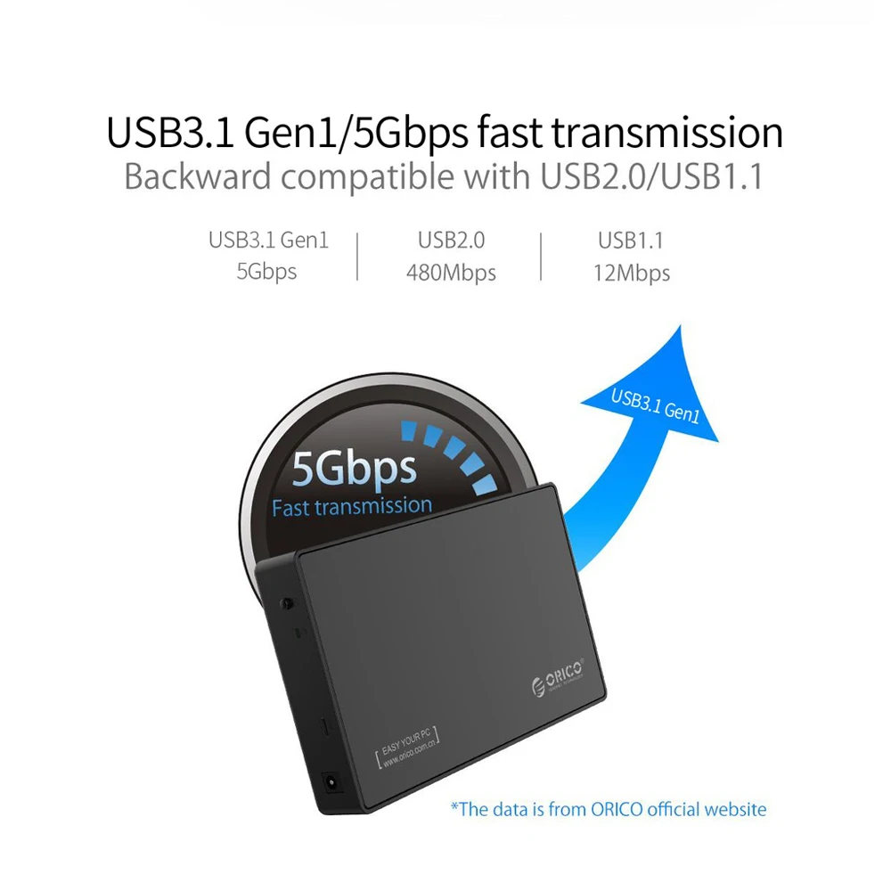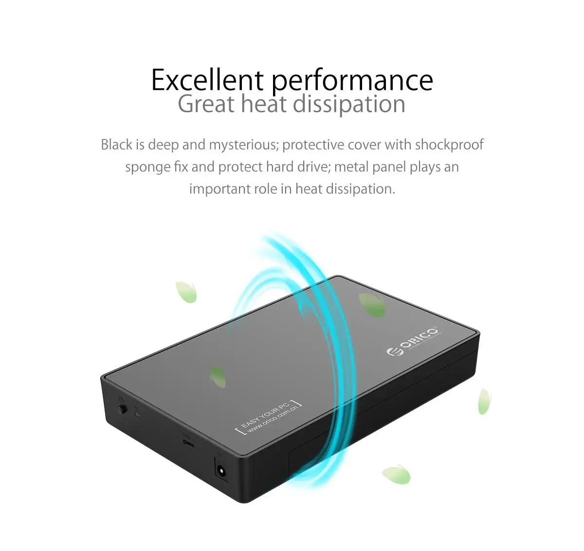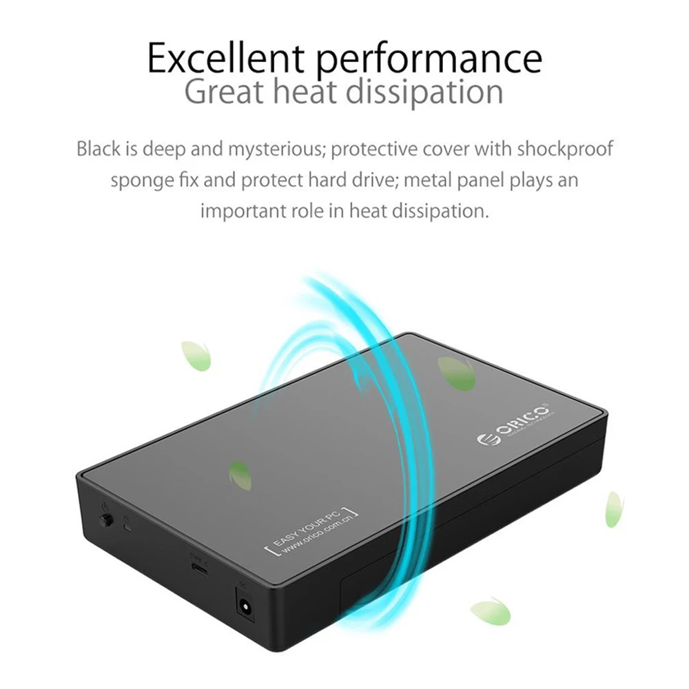 Producto CodeORICO 3588C3 Compatible HDD Type2.5/3,5 pulgadas HDD InterfaceType-C + SATA Soporte Capacity8TB Dimension194 x 118x31mm InstallationTool Free Power Supply12V2A Adaptador de corriente Sistemas compatibles Windows 10 / 8 / 7 / Vista / XP, mac OS v9.0 o superior Cable de datosTipo-C a