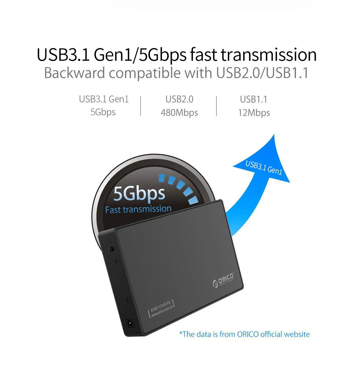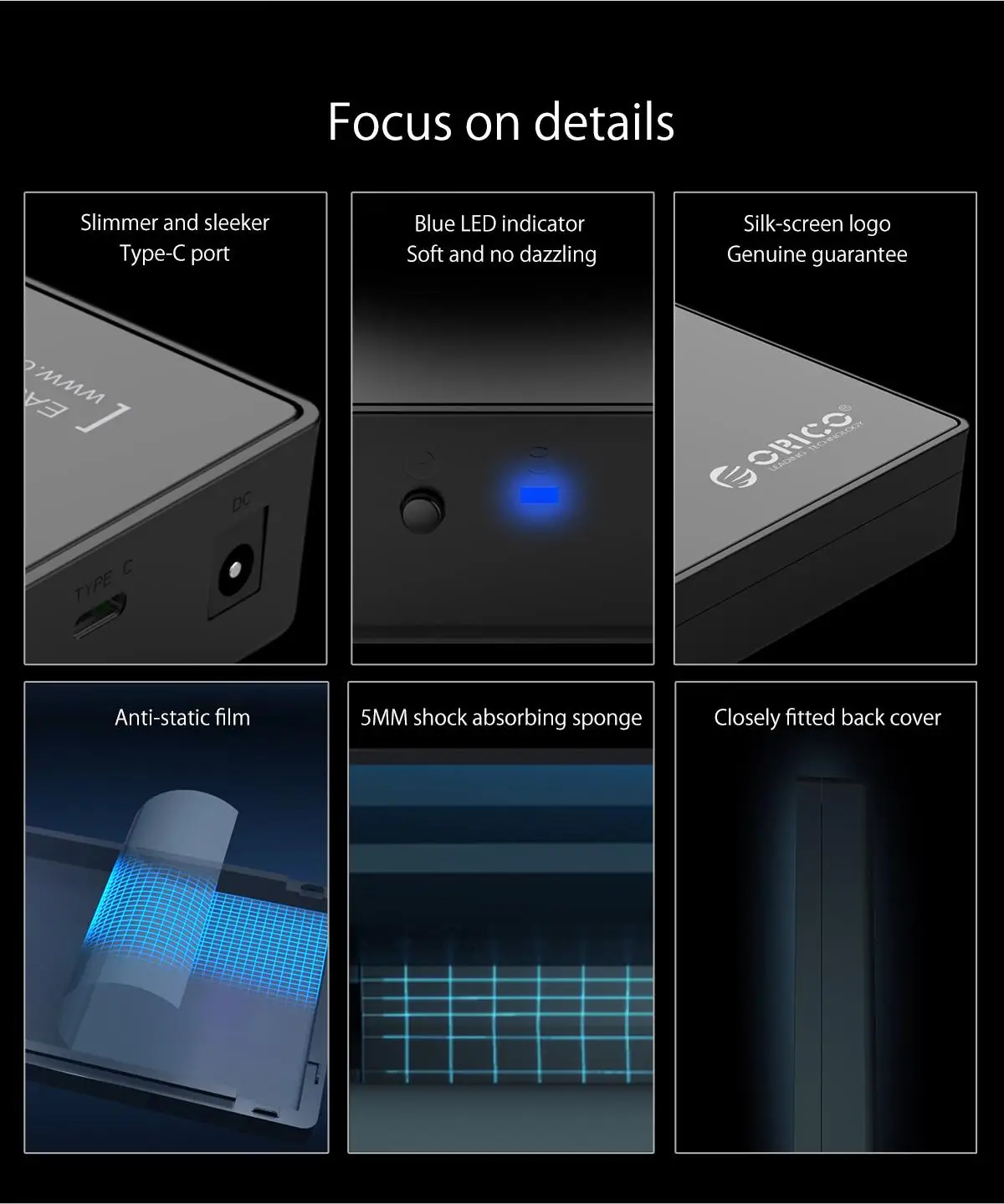 ORICO Carcasa de disco duro tipo C de 2,5/3,5 pulgadas