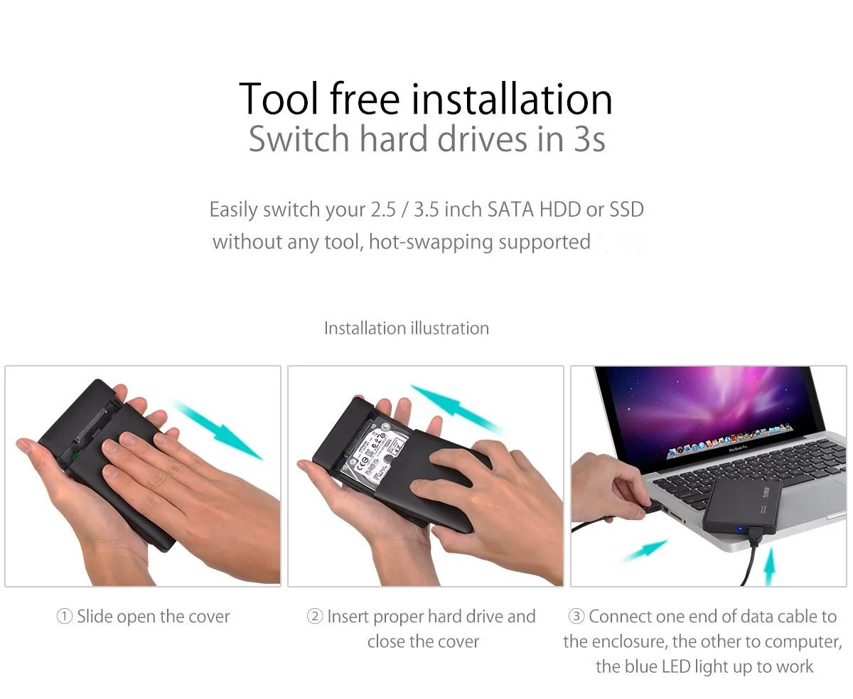 Comprar ORICO-caja de disco duro móvil tipo C SATA, puerto Serial para Notebook, escritorio externo, mecánico/SSD de estado sólido, 2,5/3,5 pulgadas