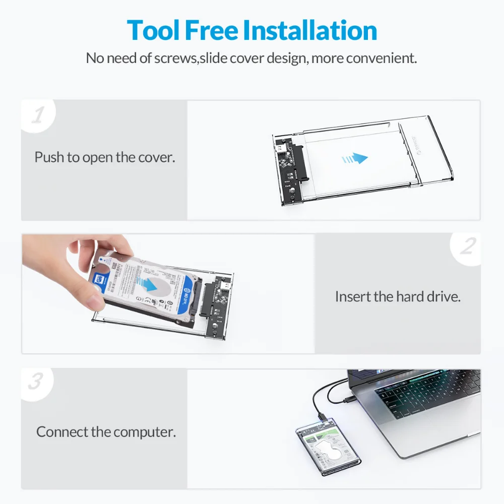 Comprar ORICO caja de disco duro móvil transparente de 2,5 pulgadas caja de disco duro de 2,5 pulgadas carcasa de ordenador portátil caja de disco duro ssd mecánico de estado sólido
