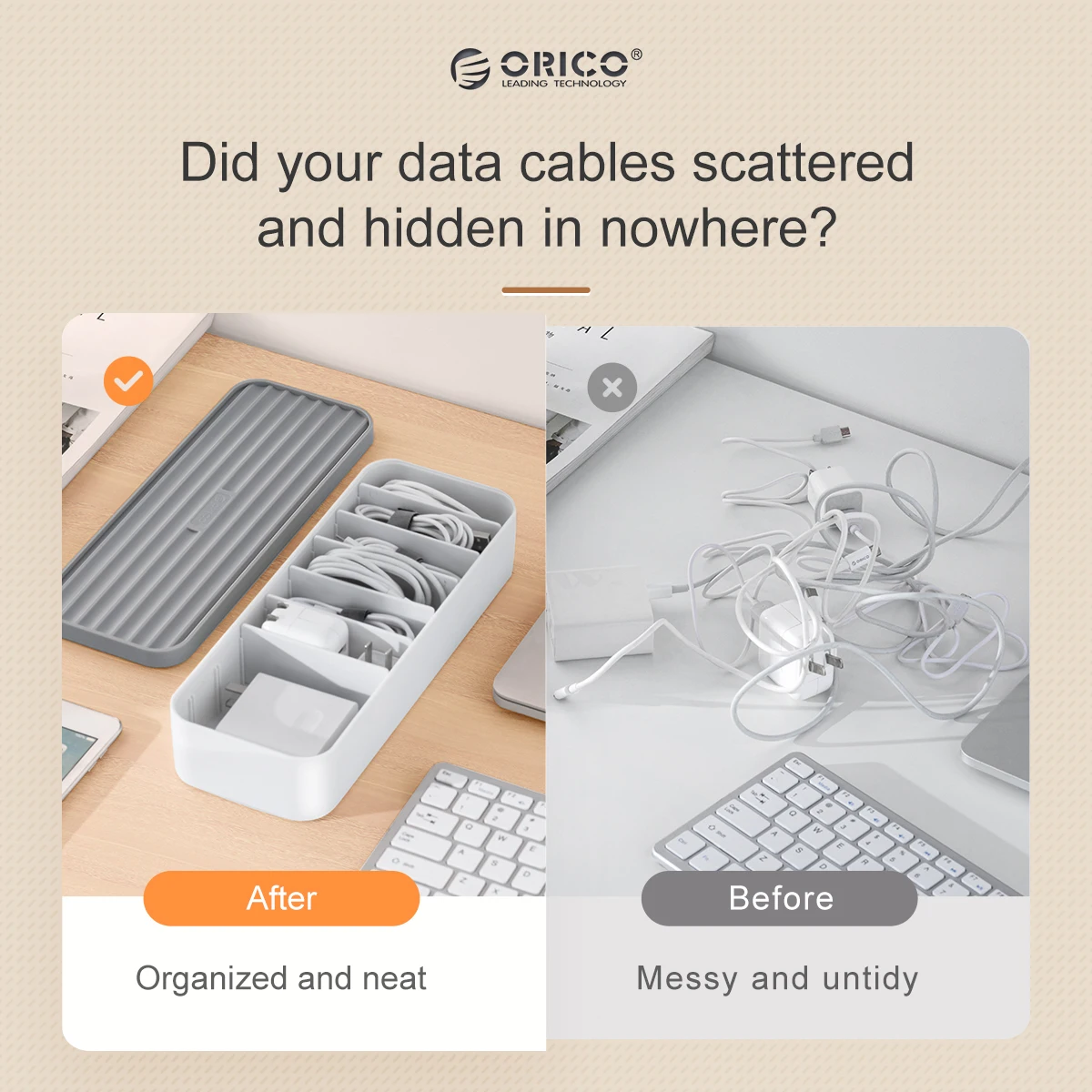 Comprar ORICO-caja de gestión de cables de datos, cargador de escritorio, organizador de auriculares, línea de escritorio apilable, viene con deflector