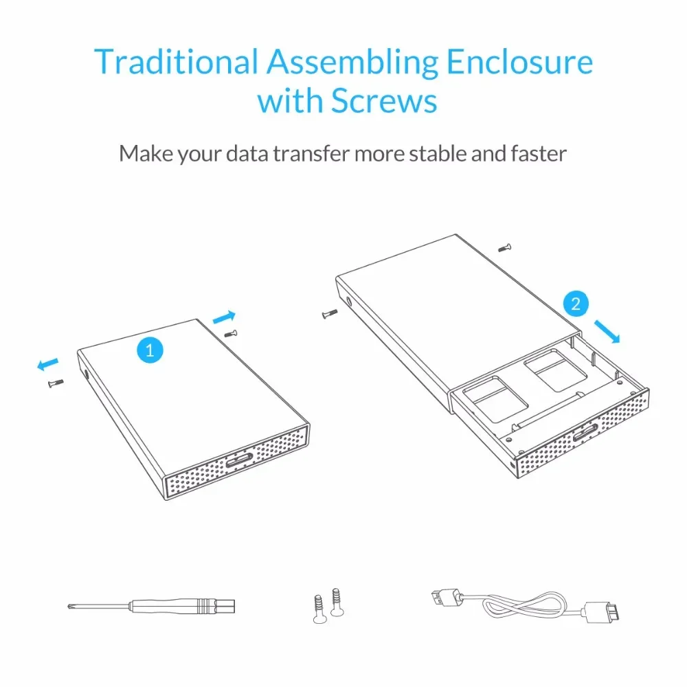 1 x caja de disco duro de aluminio ORICO de 2,5 pulgadas