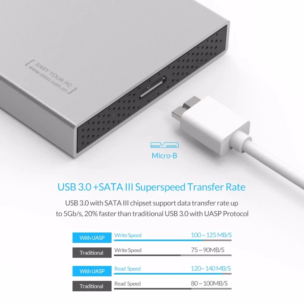 1 x caja de disco duro de aluminio ORICO de 2,5 pulgadas