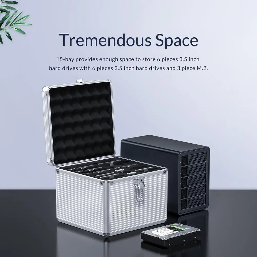 La caja protectora de 5 bahías y 10 bahías HDD puede proporcionar 5 o 10 espacios para su disco duro de 3,5 pulgadas al mismo tiempo y es una solución ideal para que almacene sus datos importantes en su unidades de disco duro.