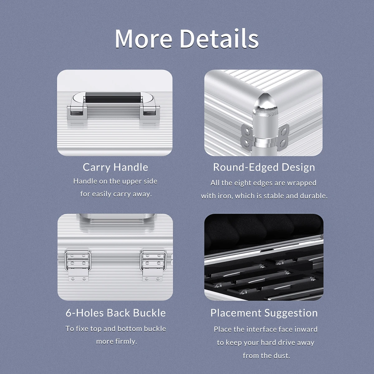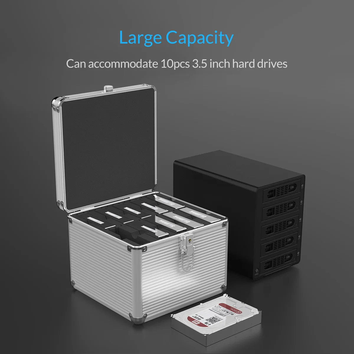 La caja protectora HDD de 5 compartimentos y 10 compartimentos puede proporcionar 5 o 10 espacios para su disco duro de 3,5 pulgadas al mismo tiempo y es una solución ideal para almacenar sus datos importantes en sus discos duros.