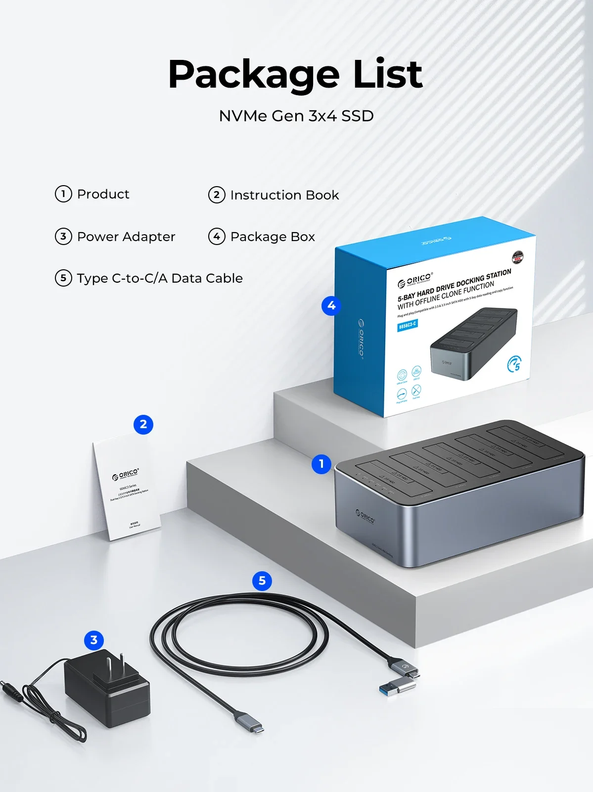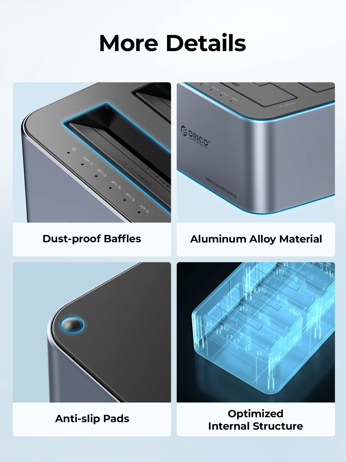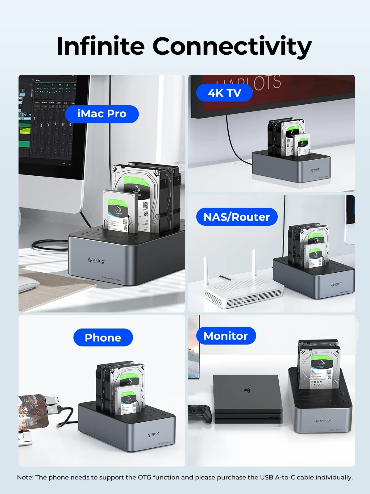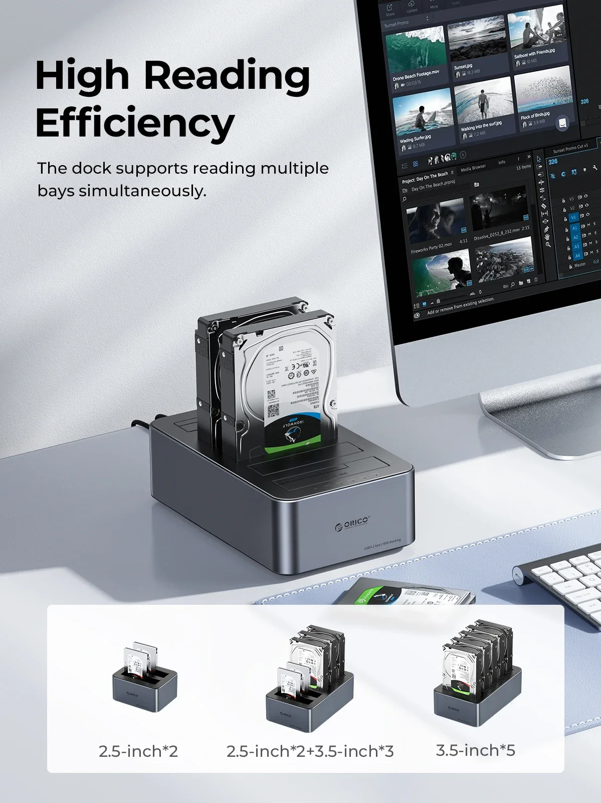 Comprar ORICO-carcasa de aluminio para disco duro de 2,5/3,5 pulgadas, estación de disco duro SATA a tipo C de 5Gbps con función de clon sin conexión, disipación de calor más fuerte