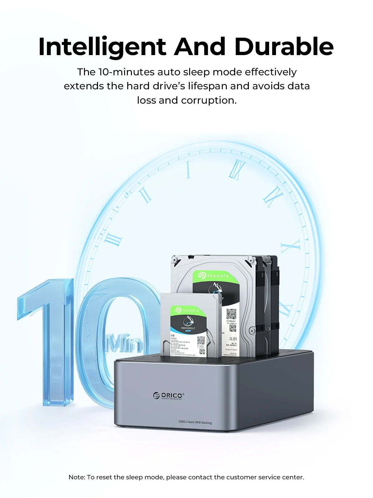 El modo de suspensión automática de 10 minutos extiende eficazmente la vida útil del disco duro y evita la pérdida y la corrupción de datos