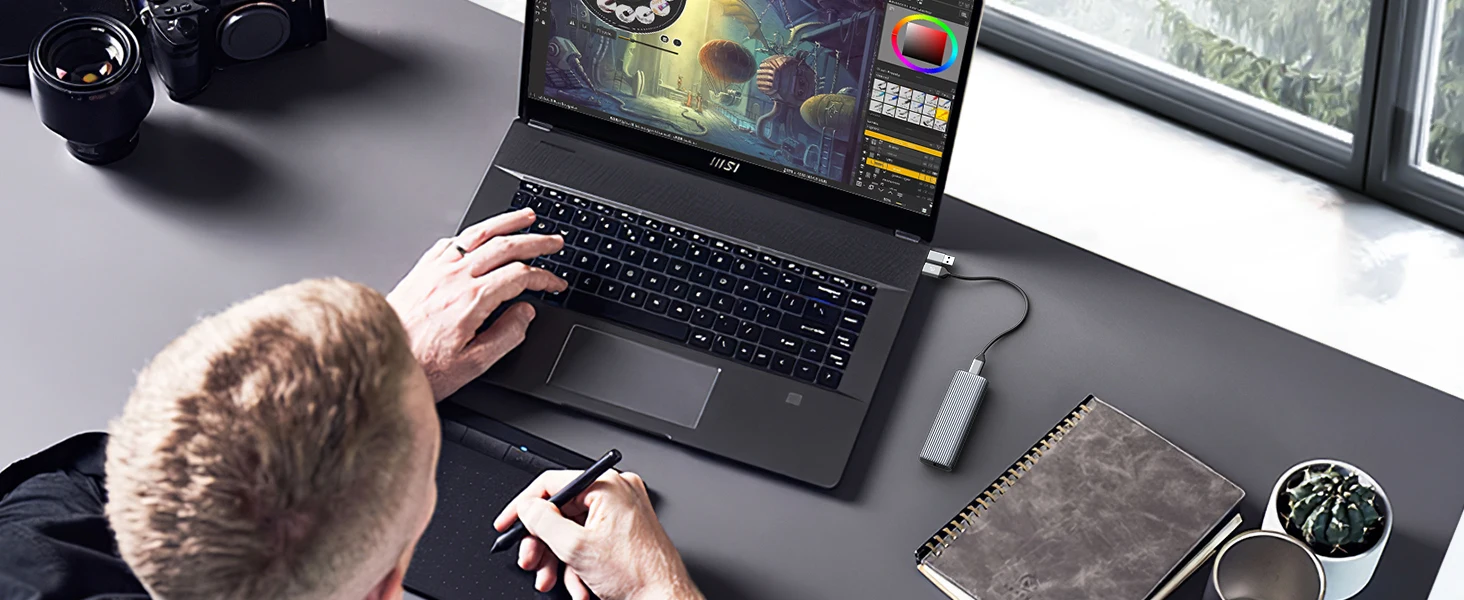 Cuerpo de aleación de aluminio con bandeja SSD deslizante, instalación sin herramientas. Haga que la instalación sea más rápida y conveniente.