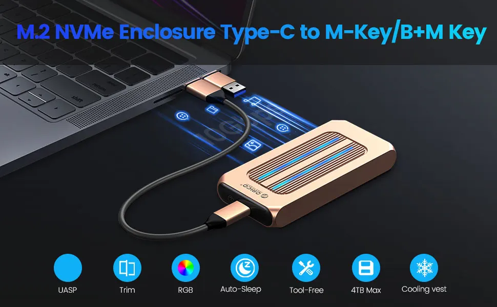 Caja ORICO NVMe SSD con controlador IC de alto rendimiento, admite protocolo de aceleración UASP y funciones Trim, SMART, que pueden mejorar eficazmente la velocidad del SSD, proteger el funcionamiento de los datos y extender la vida útil del SSD.