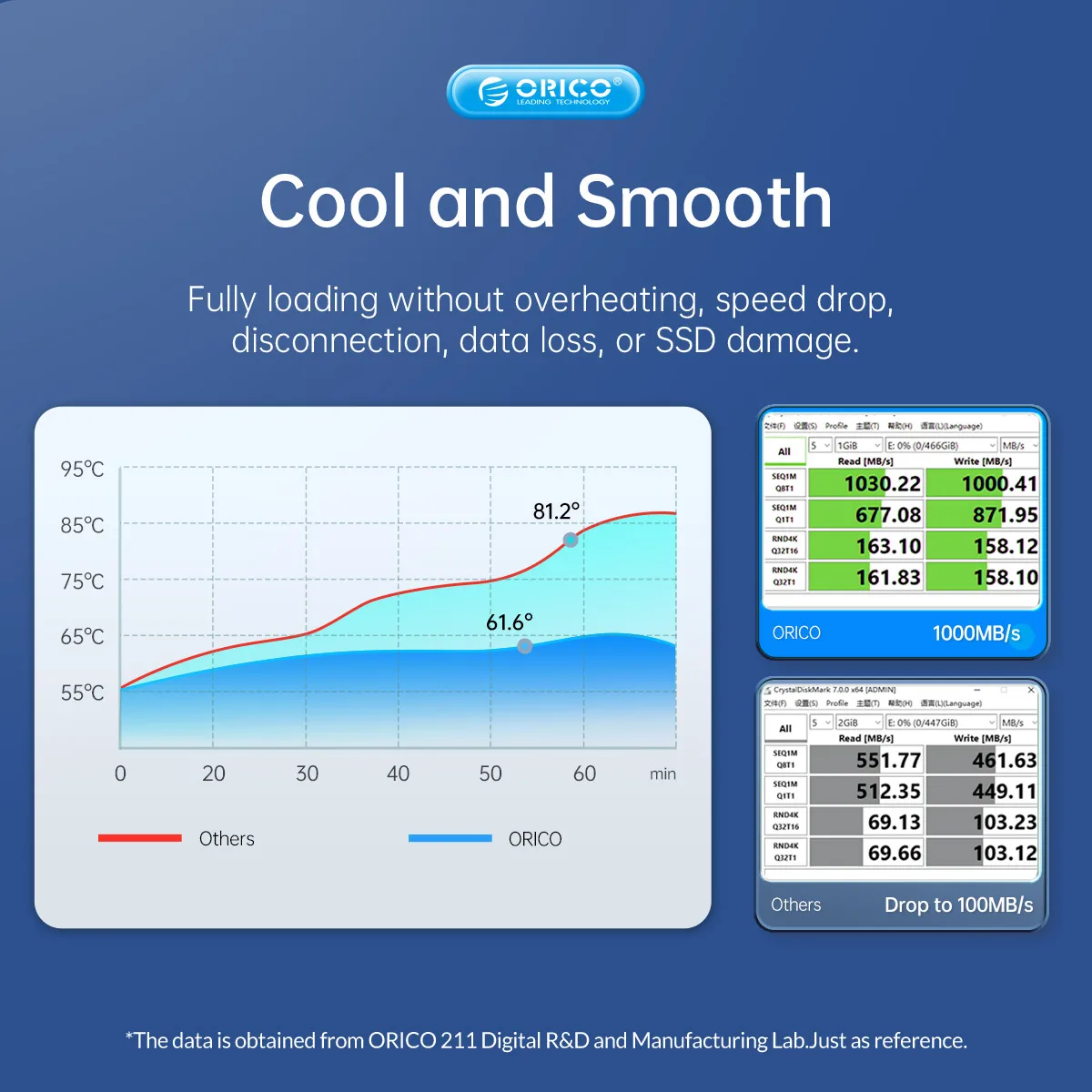 La carcasa ORICO nvme ssd utiliza un controlador IC de alto rendimiento, admite el protocolo de aceleración y ajuste de UASP, funciones inteligentes, que pueden mejorar eficazmente la velocidad del SSD, proteger el funcionamiento de los datos y extender la vida útil del SSD.
