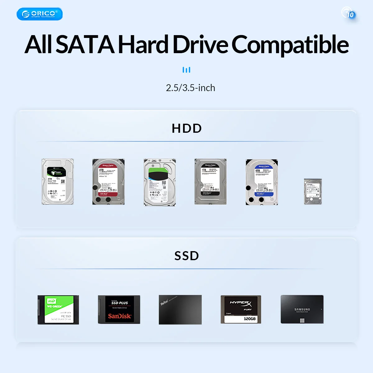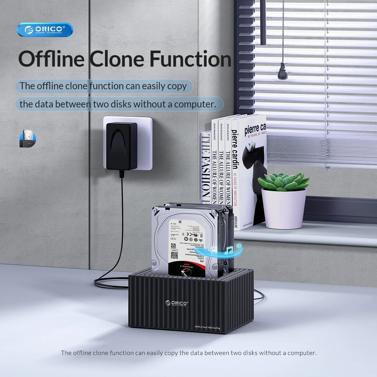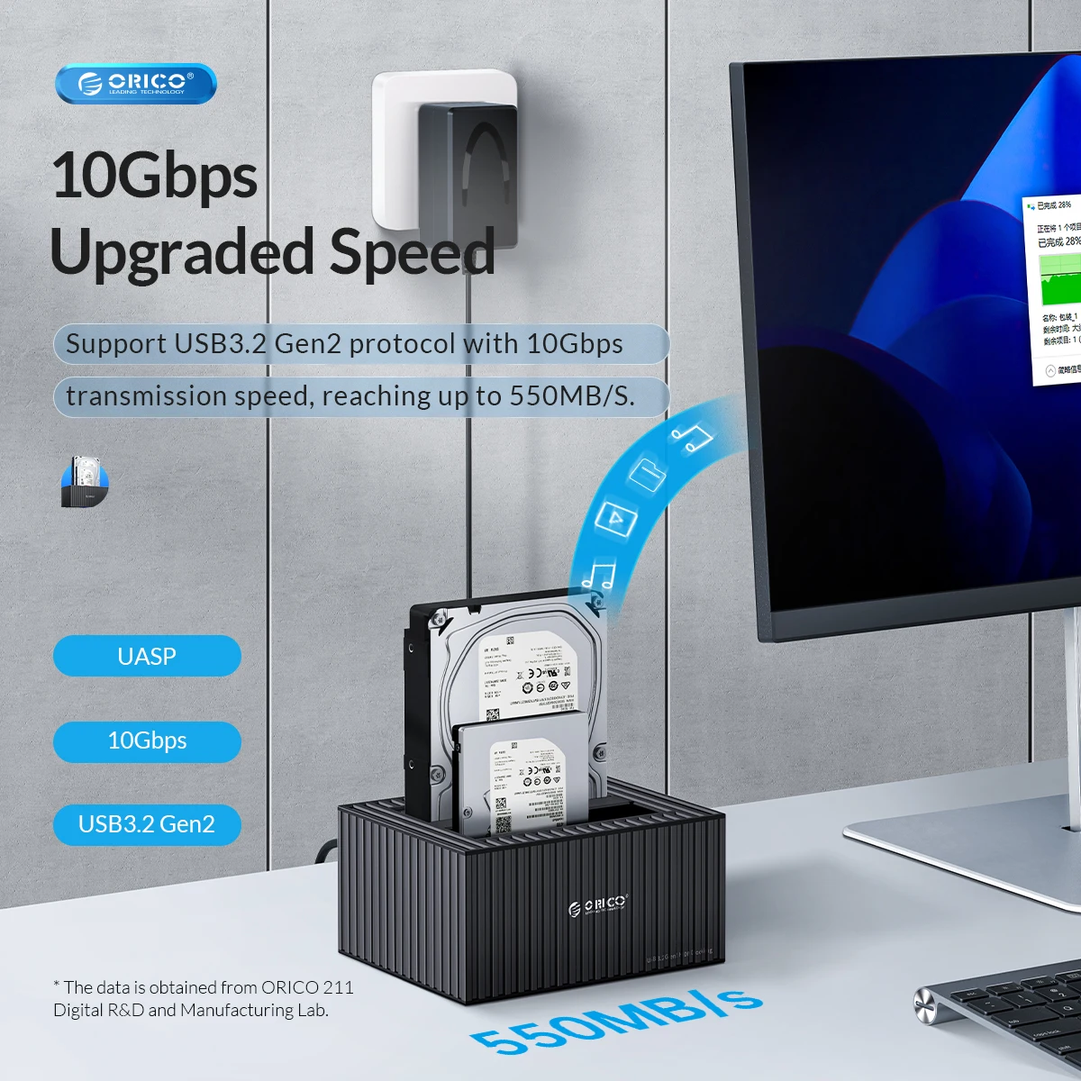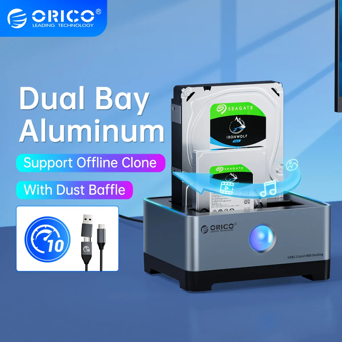 Comprar ORICO-carcasa de disco duro de aluminio, estación de disco duro sin conexión, clon 2 Bay, tipo C, 10gbps, serie 66/96/55/58 para HDD/SSD PC de 2,5/3,5 pulgadas