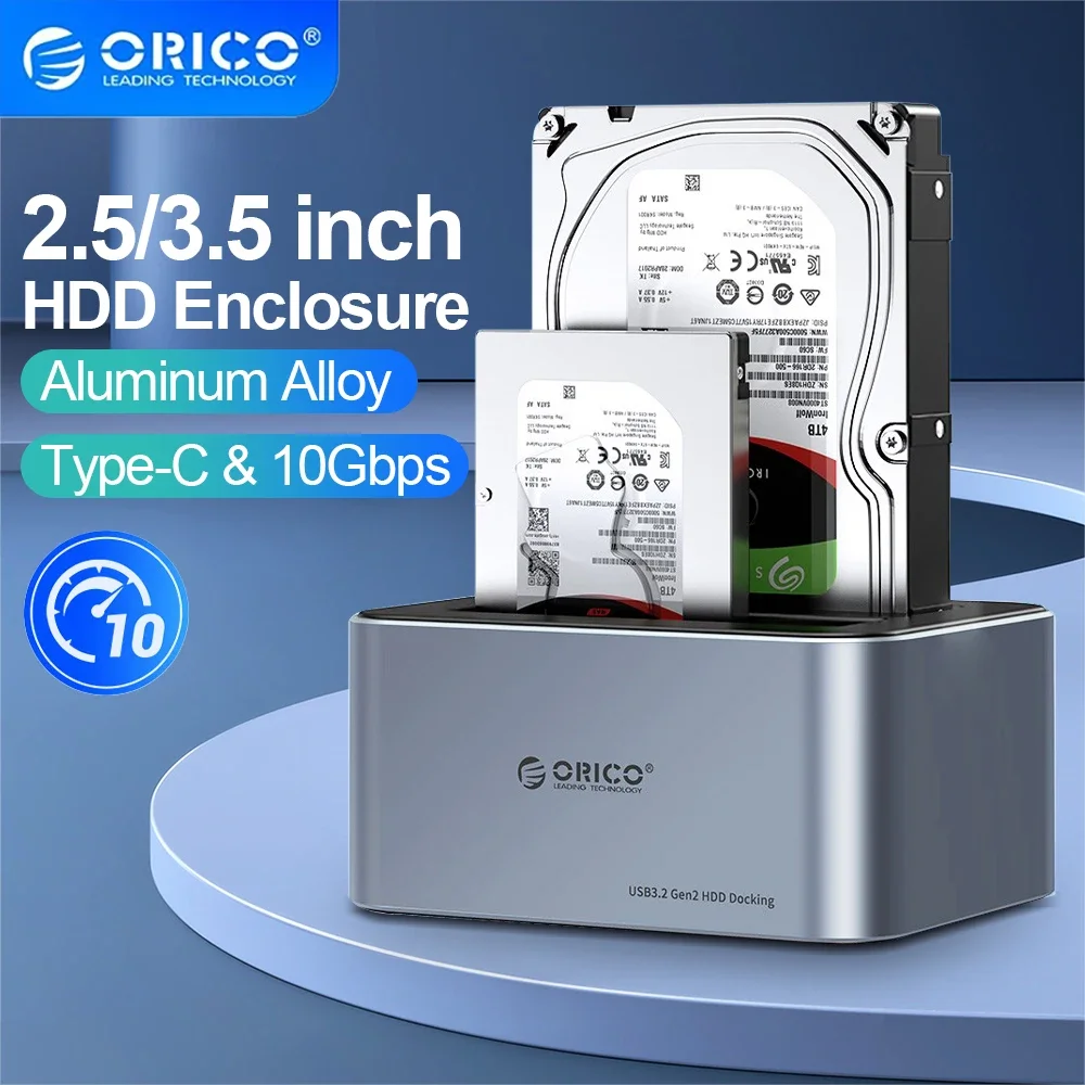 Comprar ORICO-carcasa de disco duro de aluminio tipo C, estación de acoplamiento de 2,5 para HDD/3,5 pulgadas, 10Gbps, con clon sin conexión, funda Hd externa, Base de doble Bahía