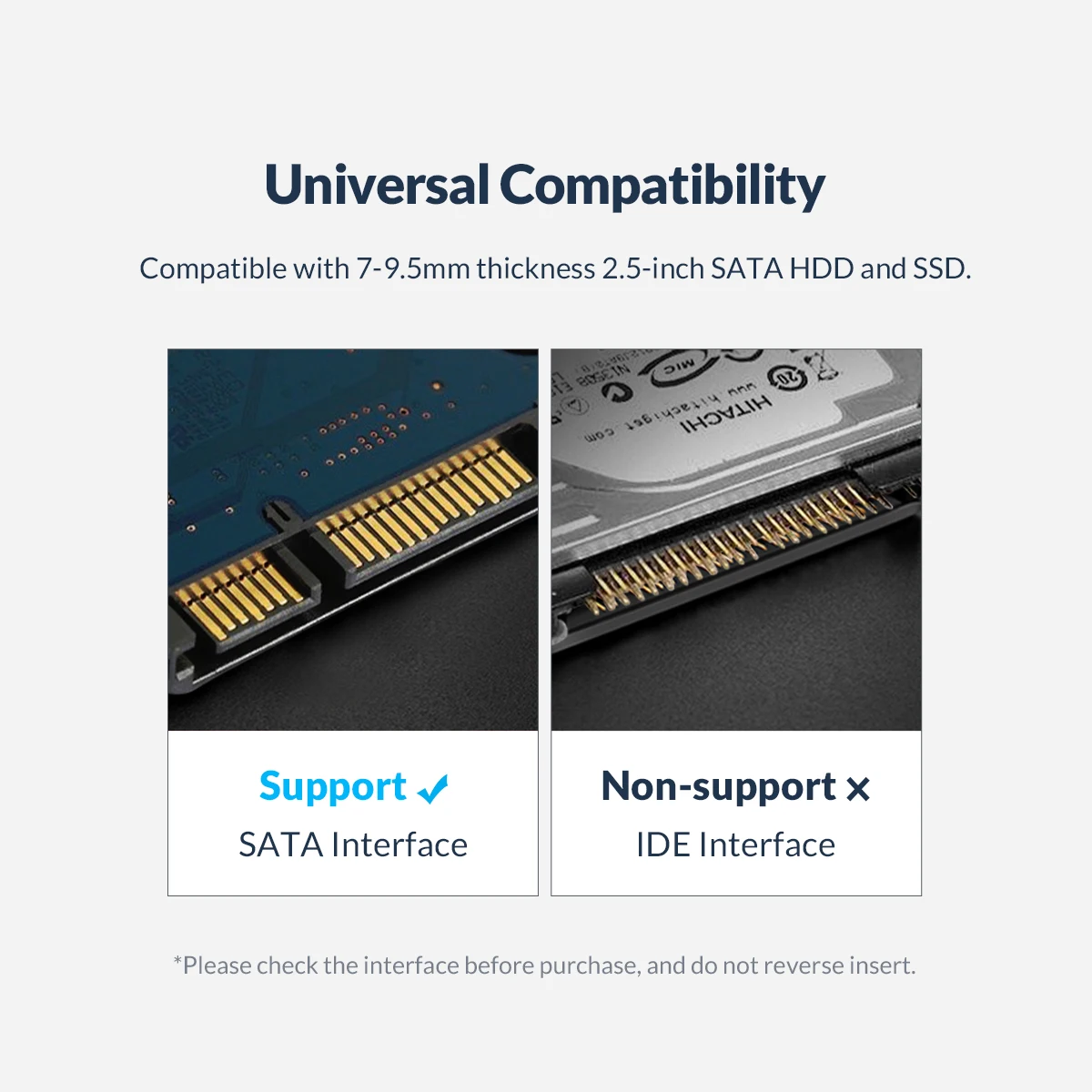 Compatible con 7-9,5mm de espesor 2,5 pulgadas SATA HDD y SSD