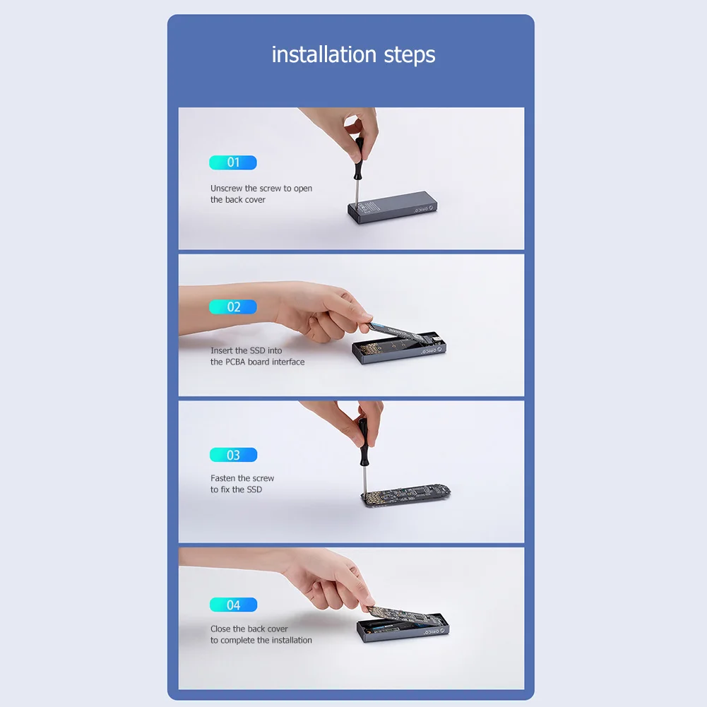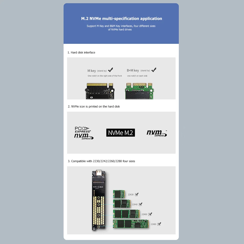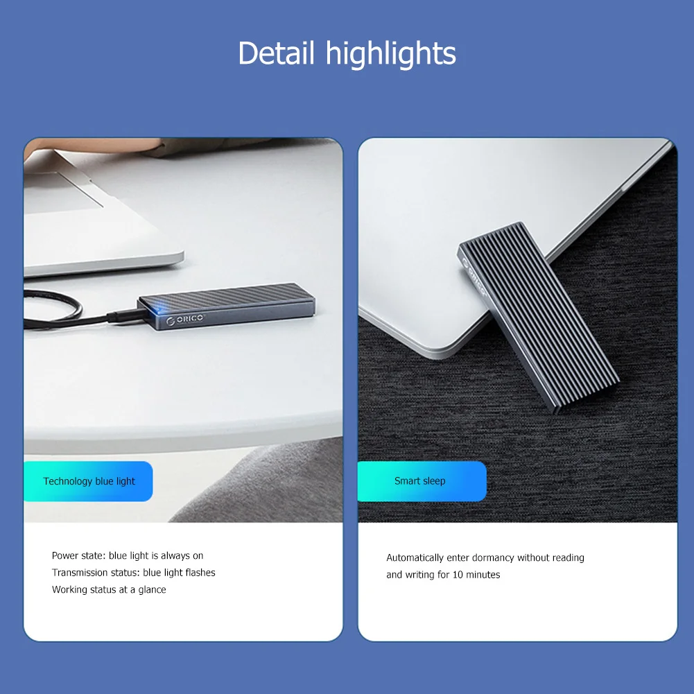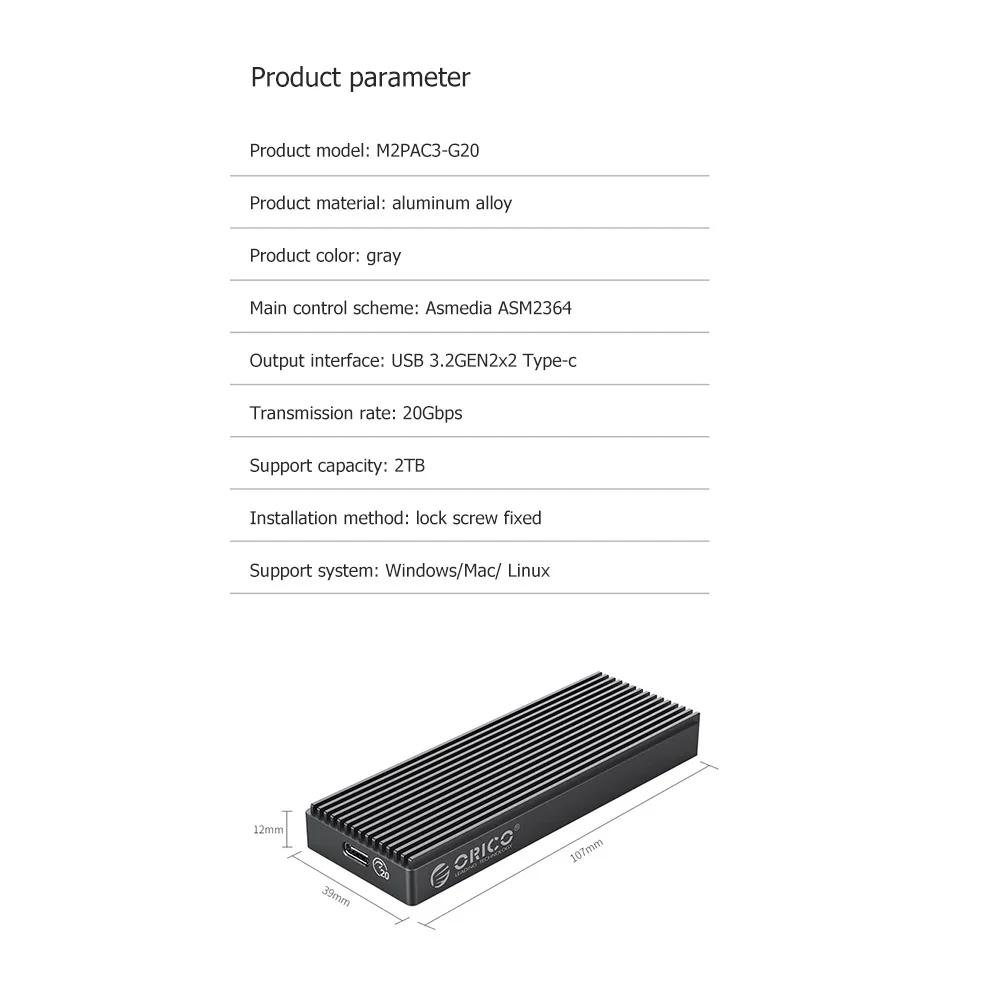 Comprar ORICO-carcasa de disco duro externo, carcasa de SSD M.2 NVME, clave M & B, tipo C, USB 3,2, 20Gbps, M2PAC3-G20
