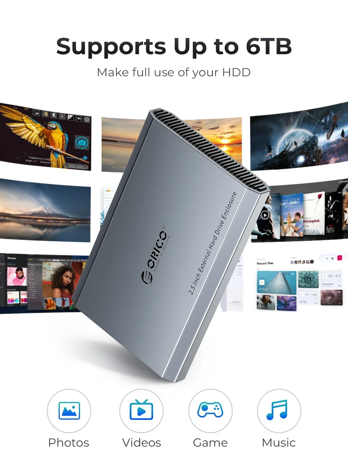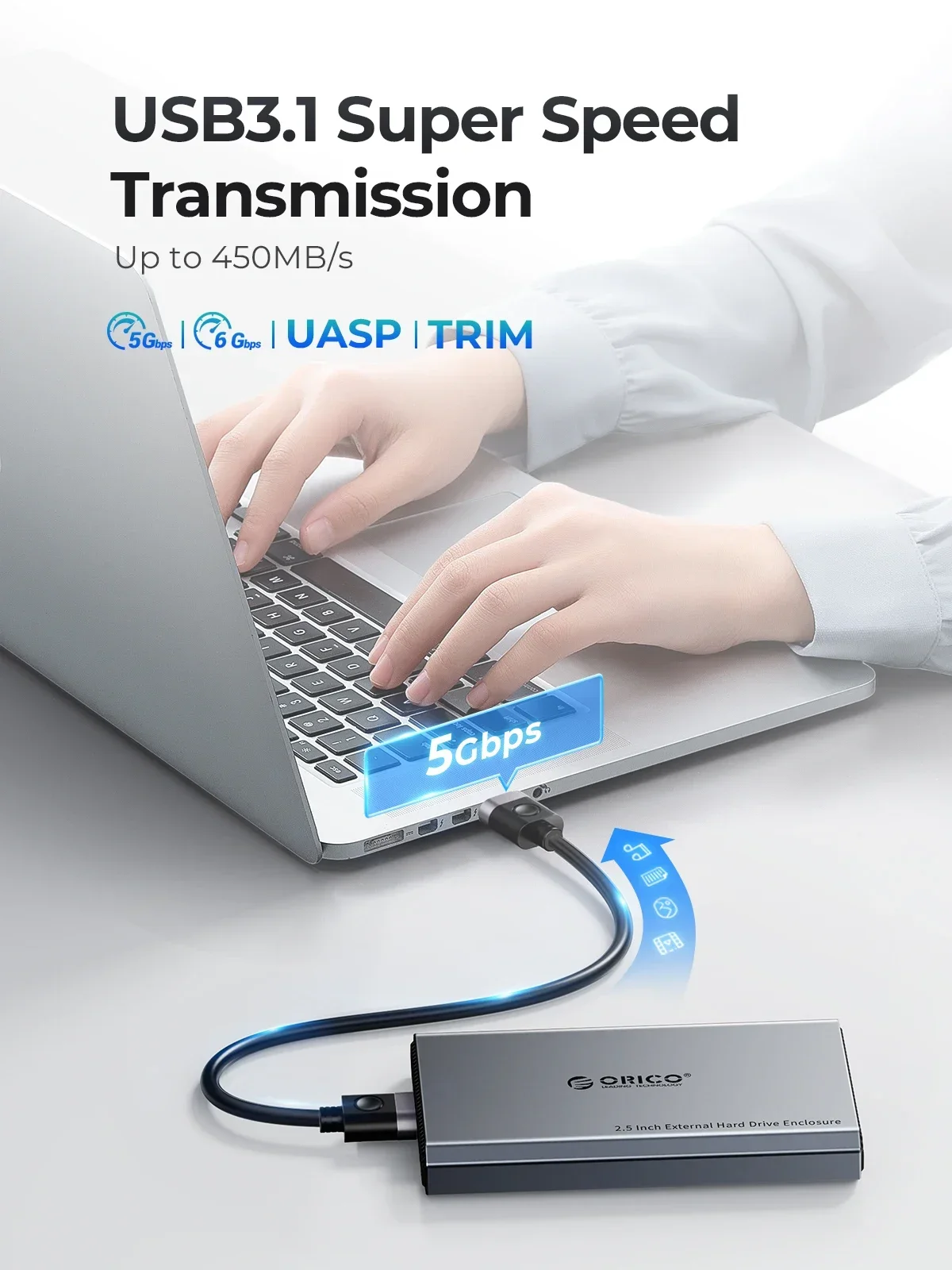 Comprar ORICO-carcasa de disco duro externo tipo C para Macbook, carcasa de aleación de aluminio y ABS, 2,5 pulgadas, 5Gbps