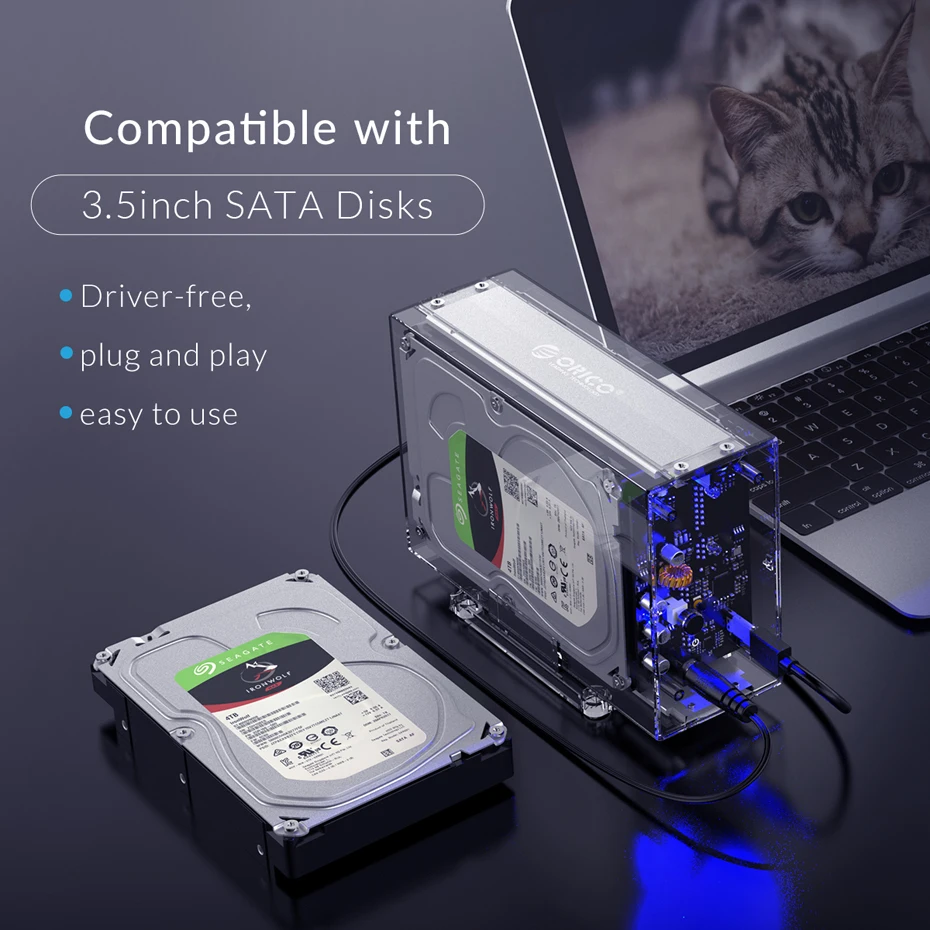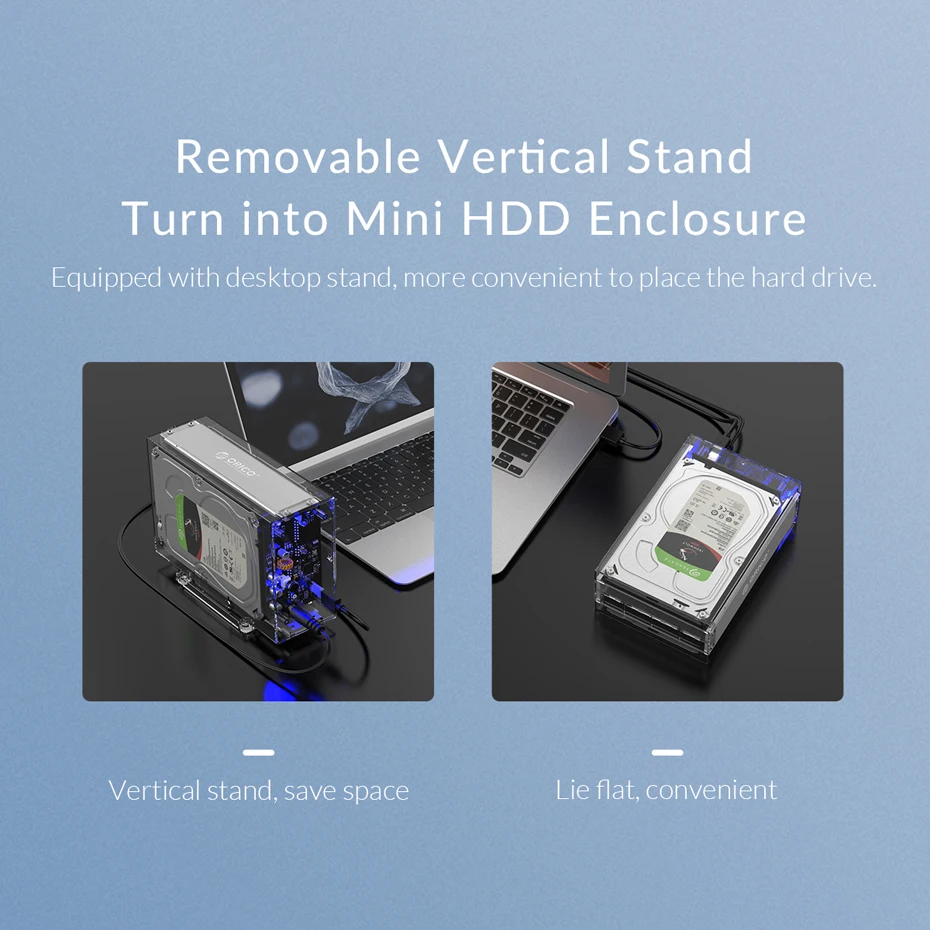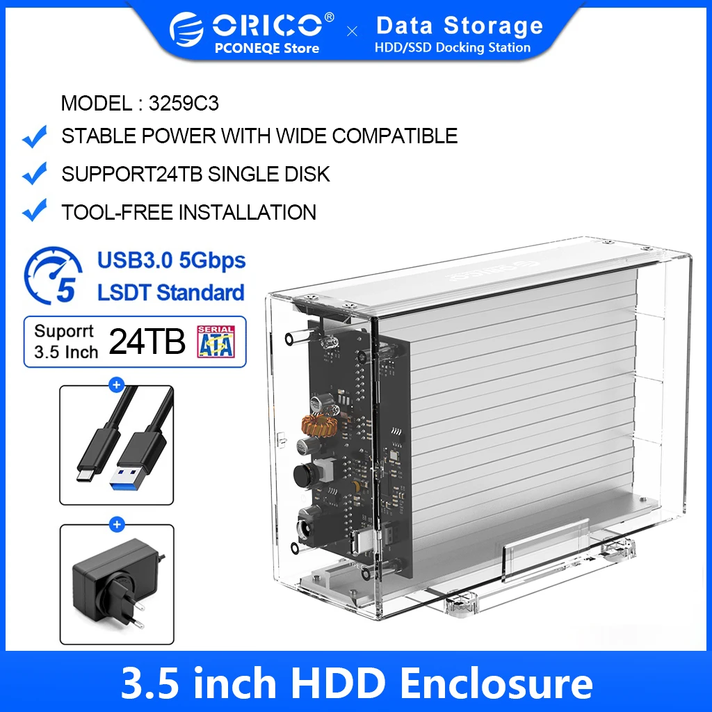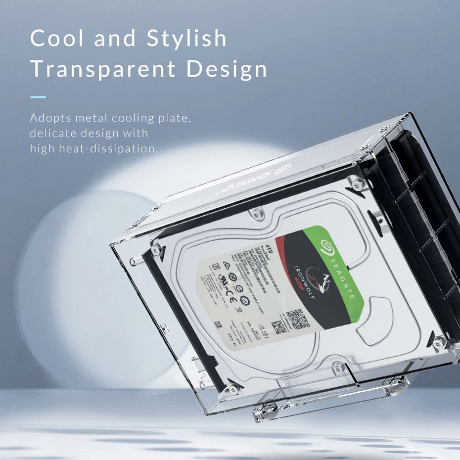 Comprar ORICO-carcasa de disco duro portátil serie transparente, estación de acoplamiento de 3,5 pulgadas para HDD, doble bahía, tipo c a USB 3,0