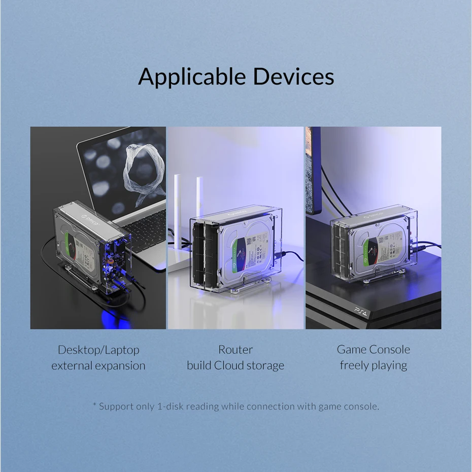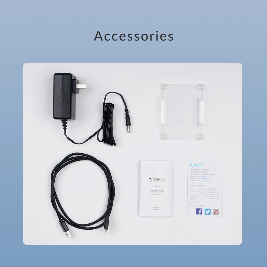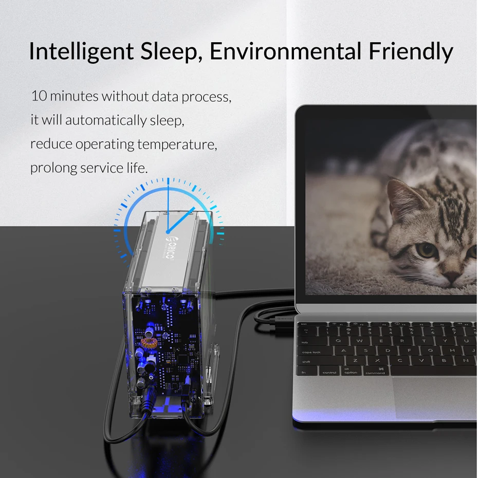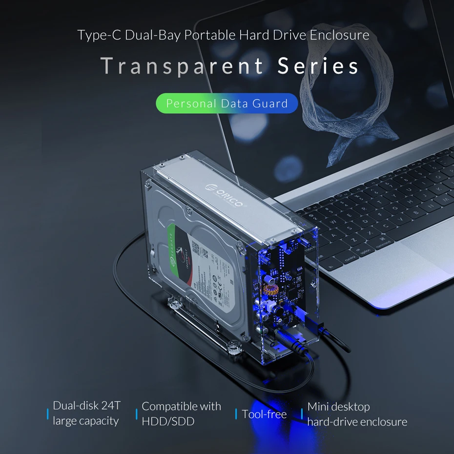 Comprar ORICO-carcasa de disco duro portátil serie transparente, estación de acoplamiento de 3,5 pulgadas para HDD, doble bahía, tipo c a USB 3,0