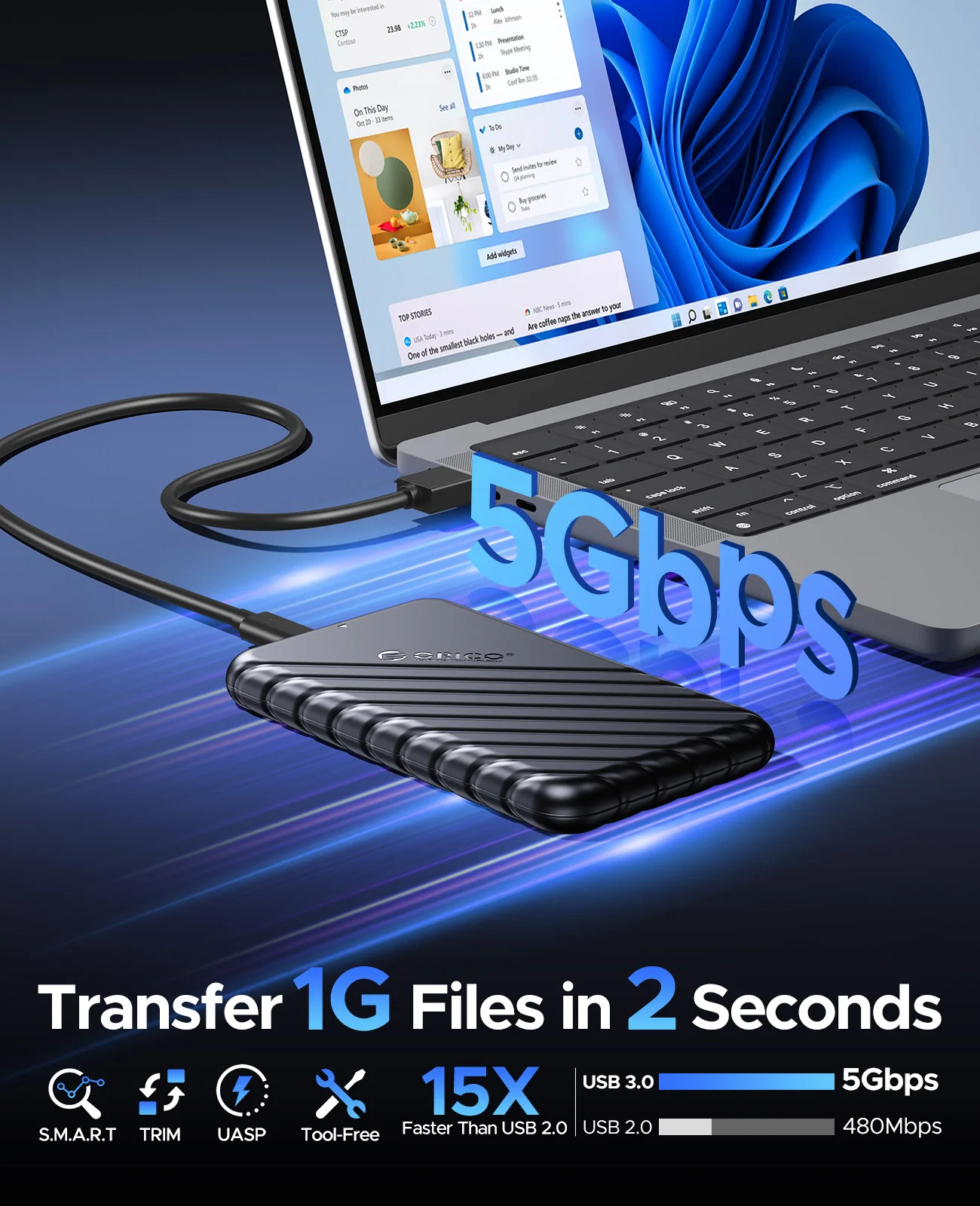 Comprar ORICO-carcasa de disco duro SATA a USB3.0, carcasa de HDD externo tipo C de 2,5 pulgadas para SSD/HDD de 7-9,5mm, compatible con UASP