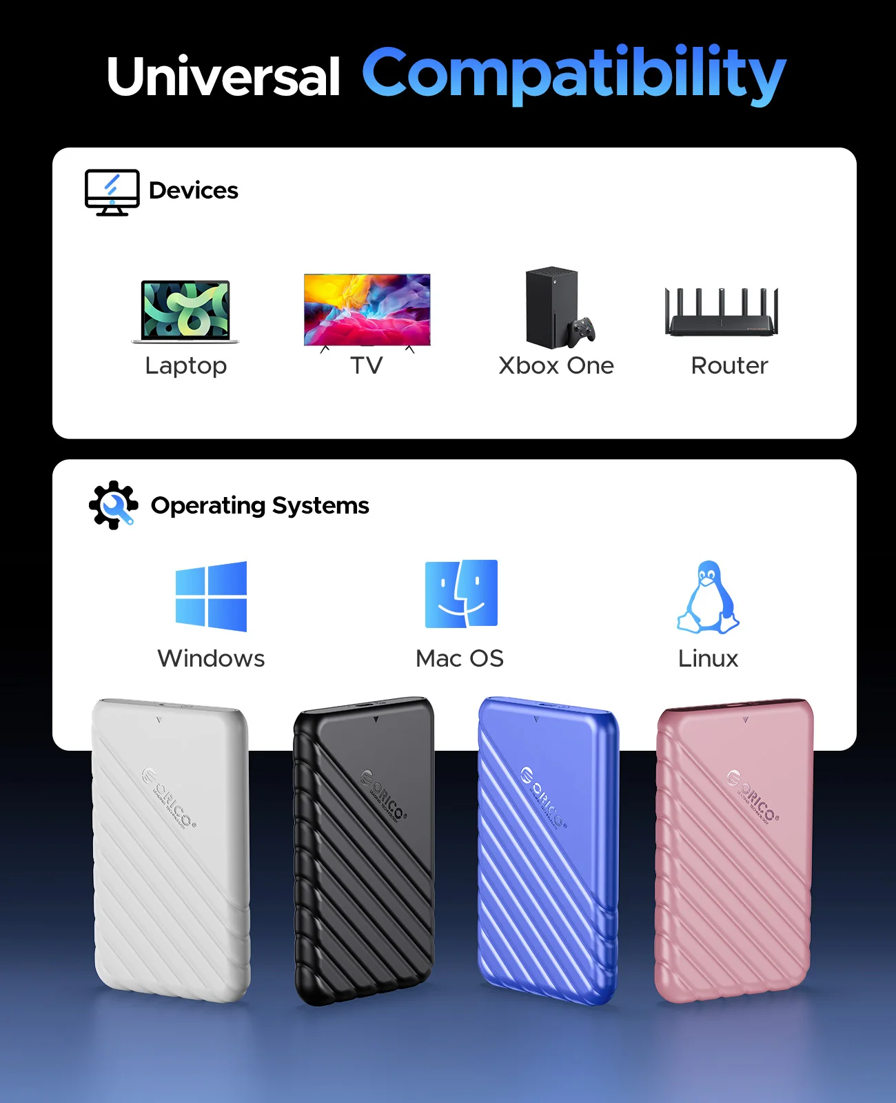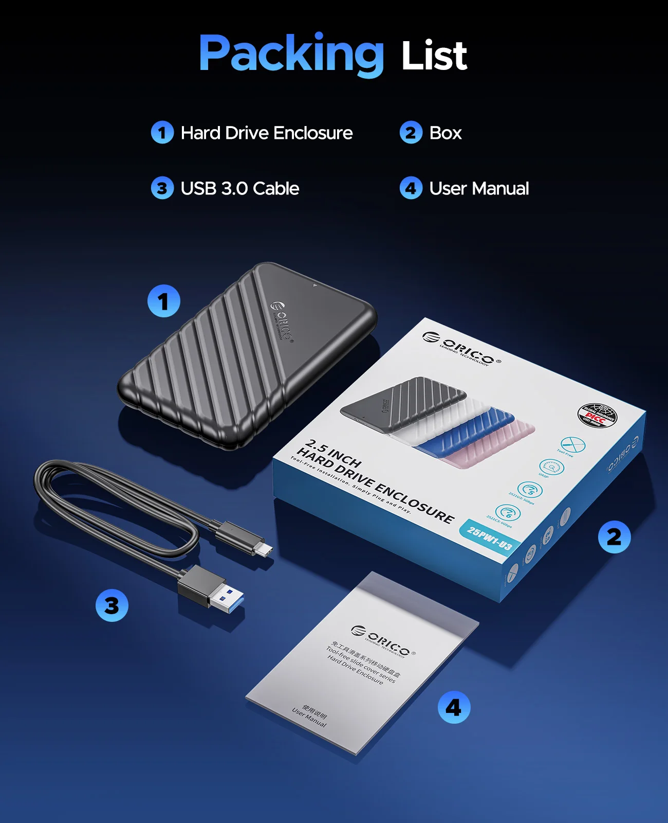 Este enlace solo incluye la caja HDD de 2,5 pulgadas del almacén RU, el envío será más rápido.Puede elegir USB3.0 y Puerto tipo C y espero ver el gráfico de propiedades cuidadosamente, cualquier problema contacte con nosotros