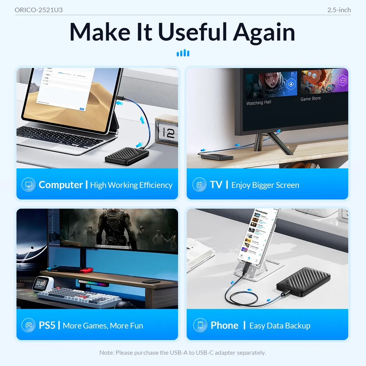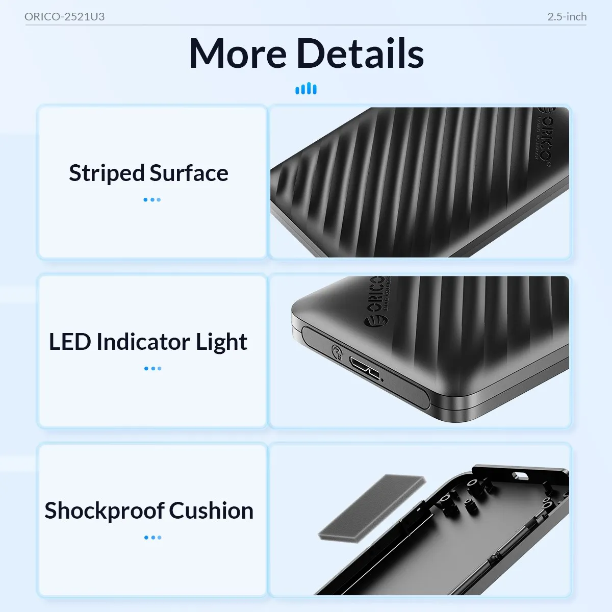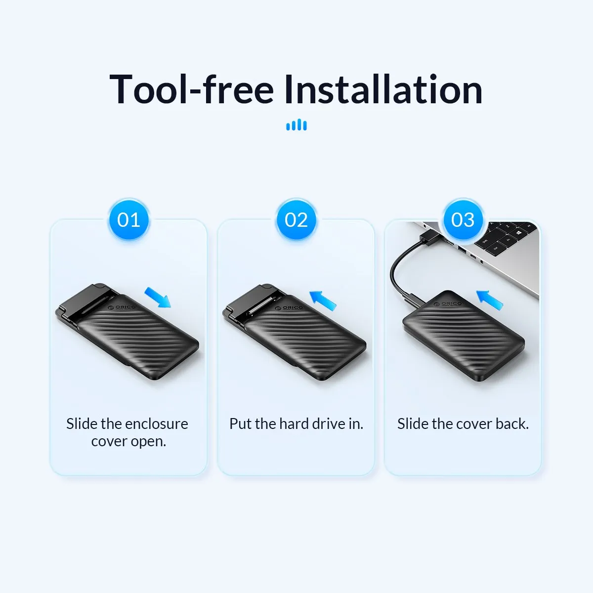 Comprar ORICO-carcasa de disco duro USB3.0 5gbps, carcasa de 2,5 pulgadas SATA a Micro B HDD SSD, soporte de suspensión automática para PC, portátil, Notebook, HDD
