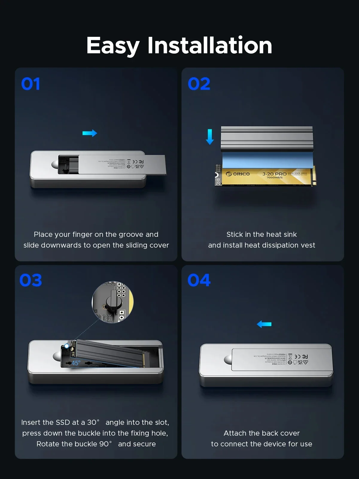 Comprar ORICO-carcasa externa de aluminio con ventilador de refrigeración, USB4, 40gbps, M.2, NVMe, SSD, Compatible con Thunderbolt 4, tipo-c, M2
