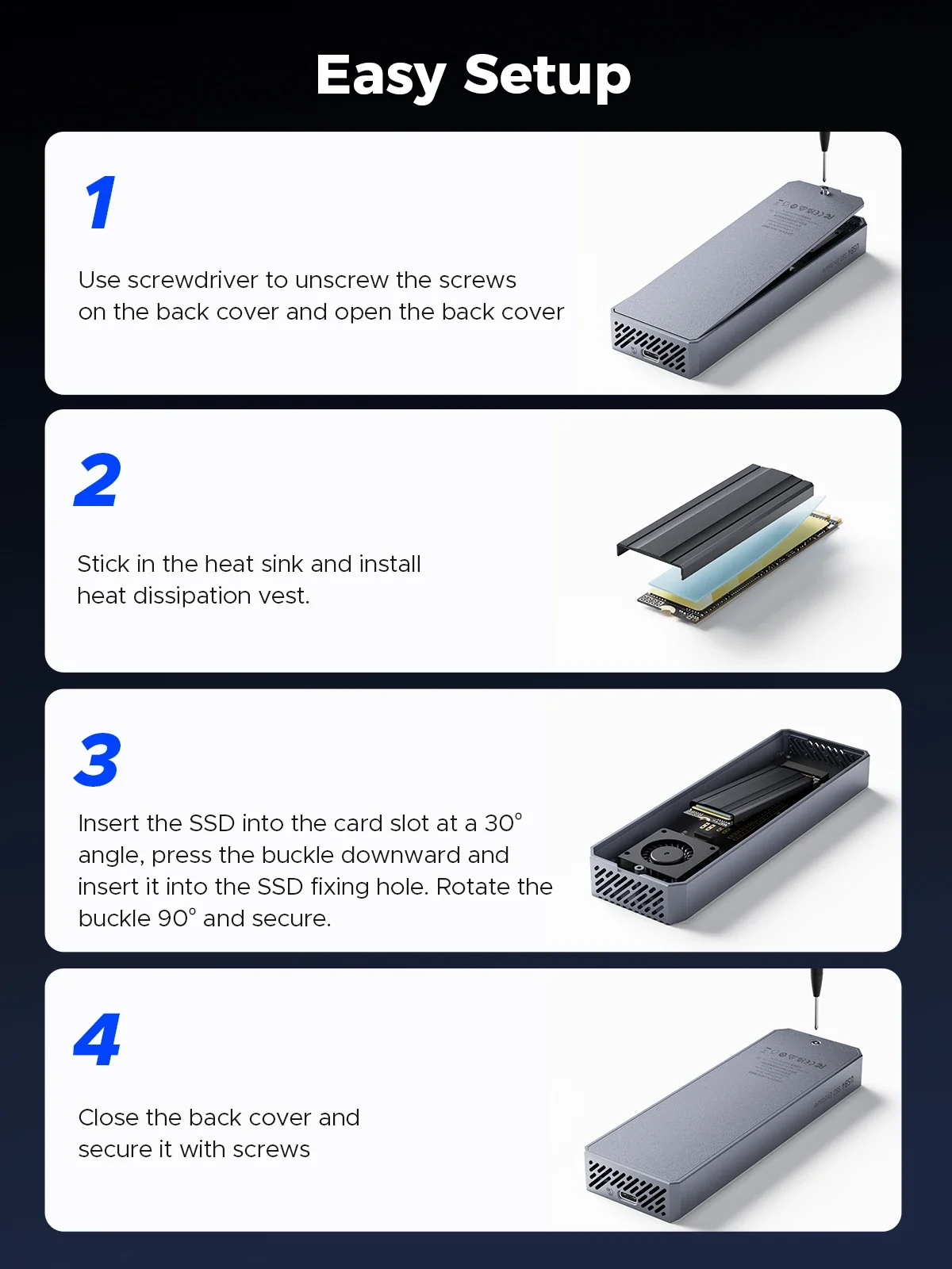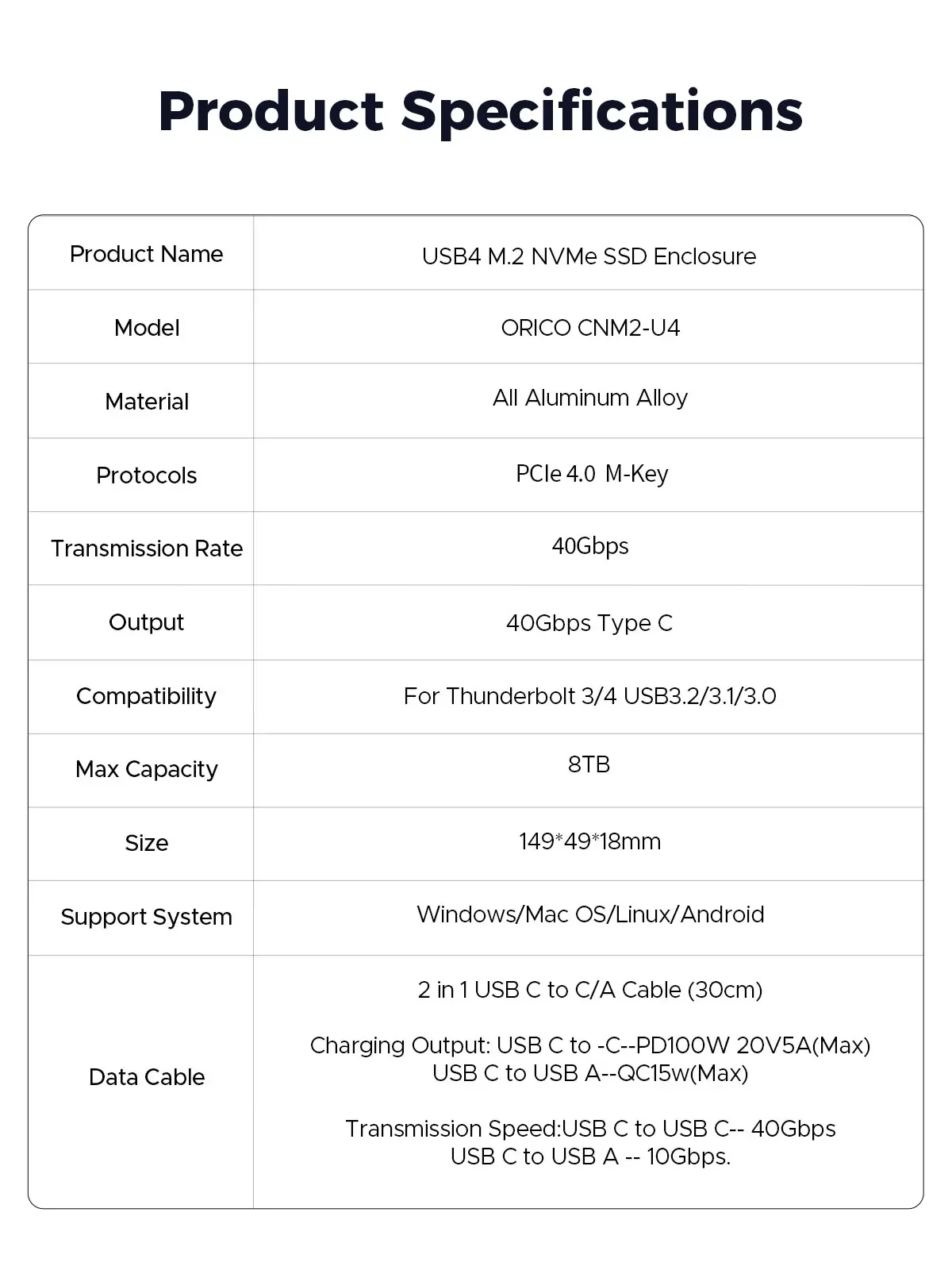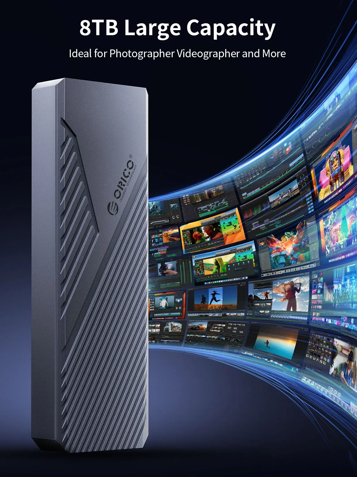 Si usted es un diseñador, viajero de negocios, fotógrafo, creador de contenido o videógrafo, los recintos ORICO USB4 le permiten manejar con confianza grandes cantidades de videos, imágenes, archivos, y datos digitales de forma rápida y sencilla. Amplíe su almacenamiento digital, haciendo que su trabajo y su vida sean más fáciles y eficientes.