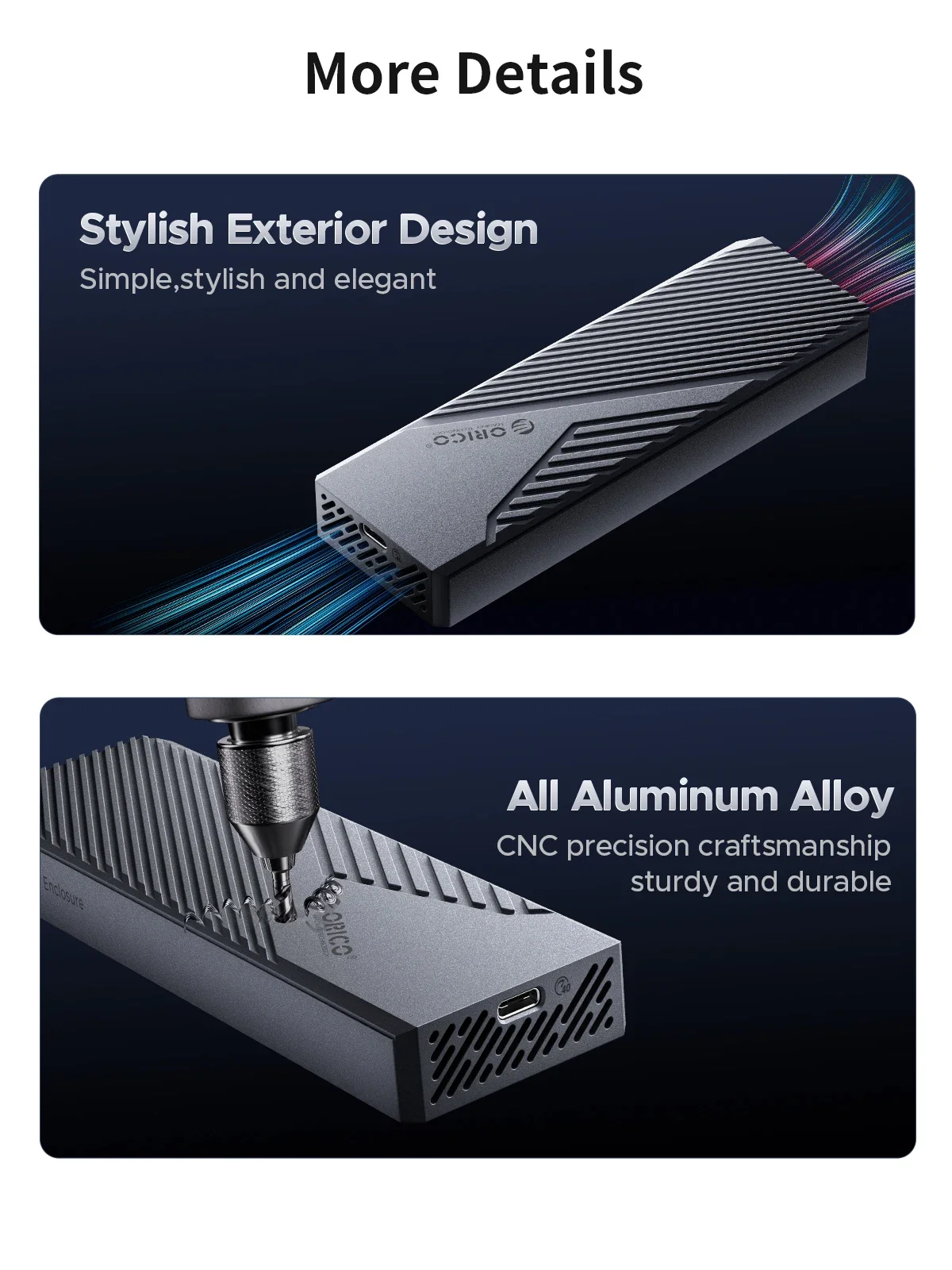 Si usted es un diseñador, viajero de negocios, fotógrafo, creador de contenido o videógrafo, los recintos ORICO USB4 le permiten manejar con confianza grandes cantidades de videos, imágenes, archivos, y datos digitales de forma rápida y sencilla. Amplíe su almacenamiento digital, haciendo que su trabajo y su vida sean más fáciles y eficientes.