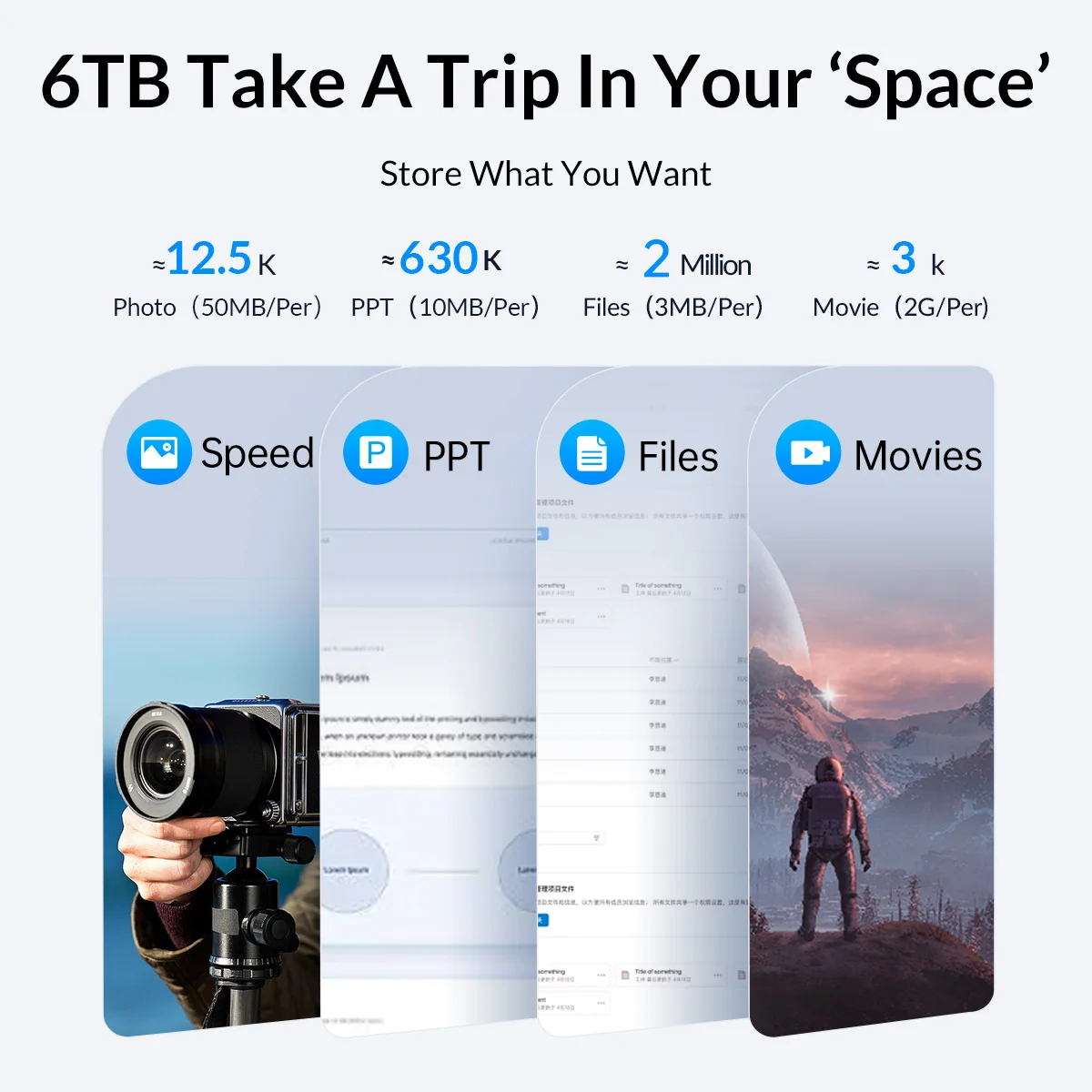 No necesita fuente de alimentación, capacidad máxima de hasta 6TB